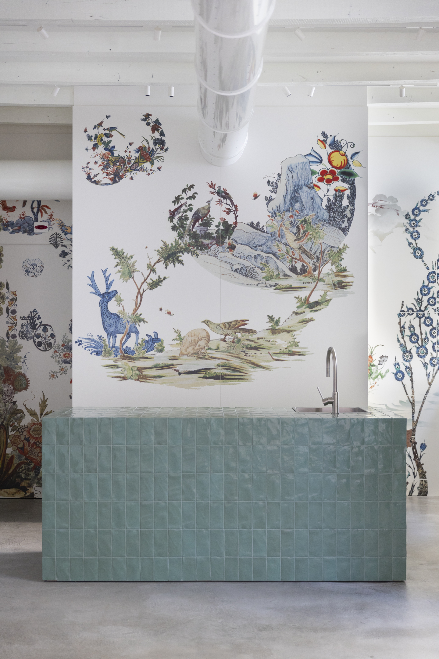 Ci spostiamo nel cuore della Chinatown meneghina per raggiungere la Fondazione Officine Saffi, dove, in occasione della Milano Art Week 2026, viene presentato al pubblico il completamento dell’intervento permanente site specific realizzato da Francesco Simeti negli spazi della fondazione. Concepita sin dalle sue prime fasi come un’opera aperta e in divenire, Questa stanza non ha più pareti nasce dall’idea di riunire, all’interno di un’unica superficie, frammenti di decorazioni ceramiche provenienti da epoche e culture differenti. Le immagini, trasferite su lastre ceramiche grazie a una moderna tecnologia, costruiscono una composizione in cui riferimenti distanti nel tempo e nello spazio entrano in relazione, generando un tessuto visivo stratificato che modifica la percezione dell’ambiente e ne espande simbolicamente i confini.
