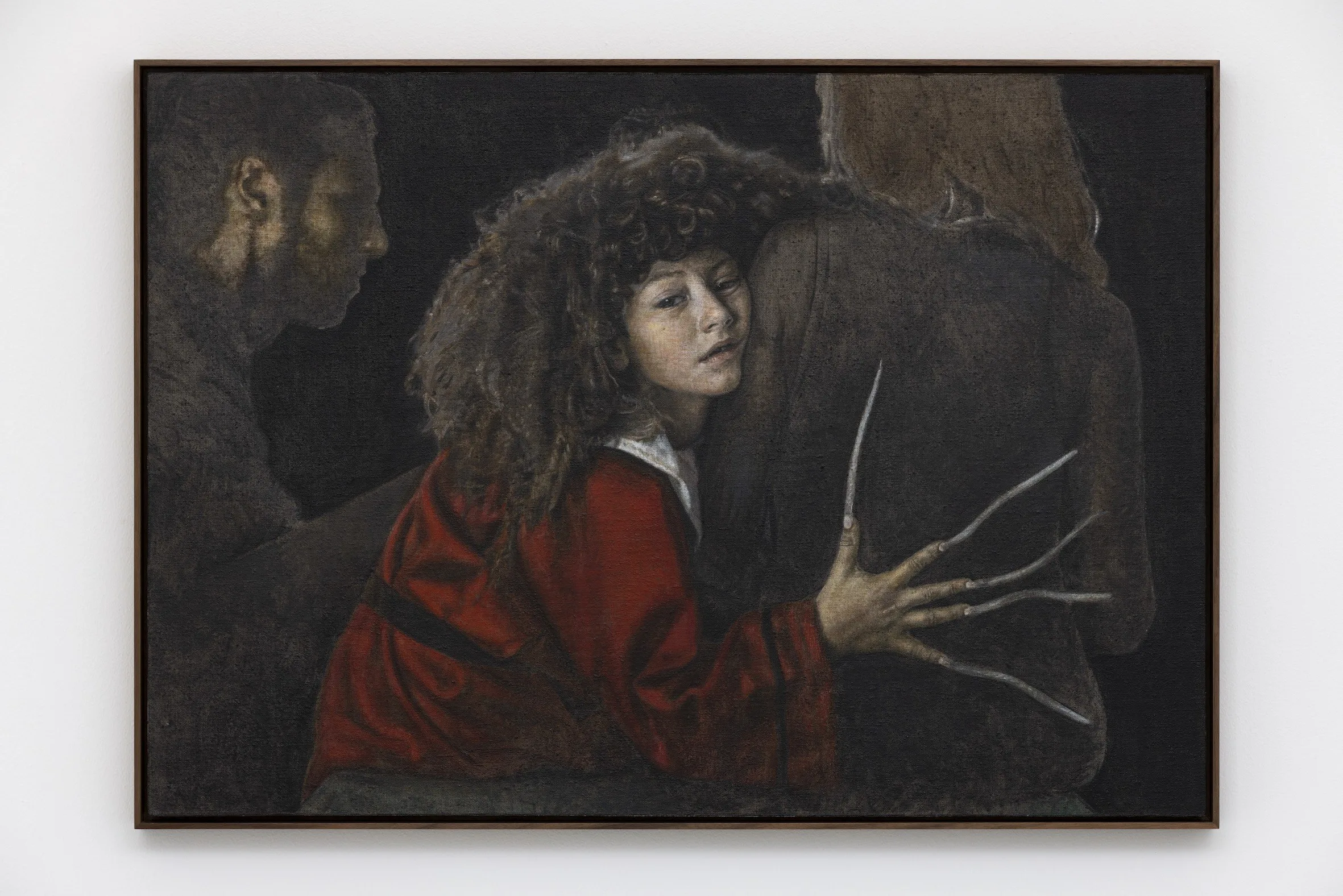 Pietro Roccasalva, Il Bravo (A Ventriloquist), 2026. Acrilico su tela su tavola (62,5x88x5cm). Courtesy Massimodecarlo, Milano, Londra, Hong Kong, Parigi