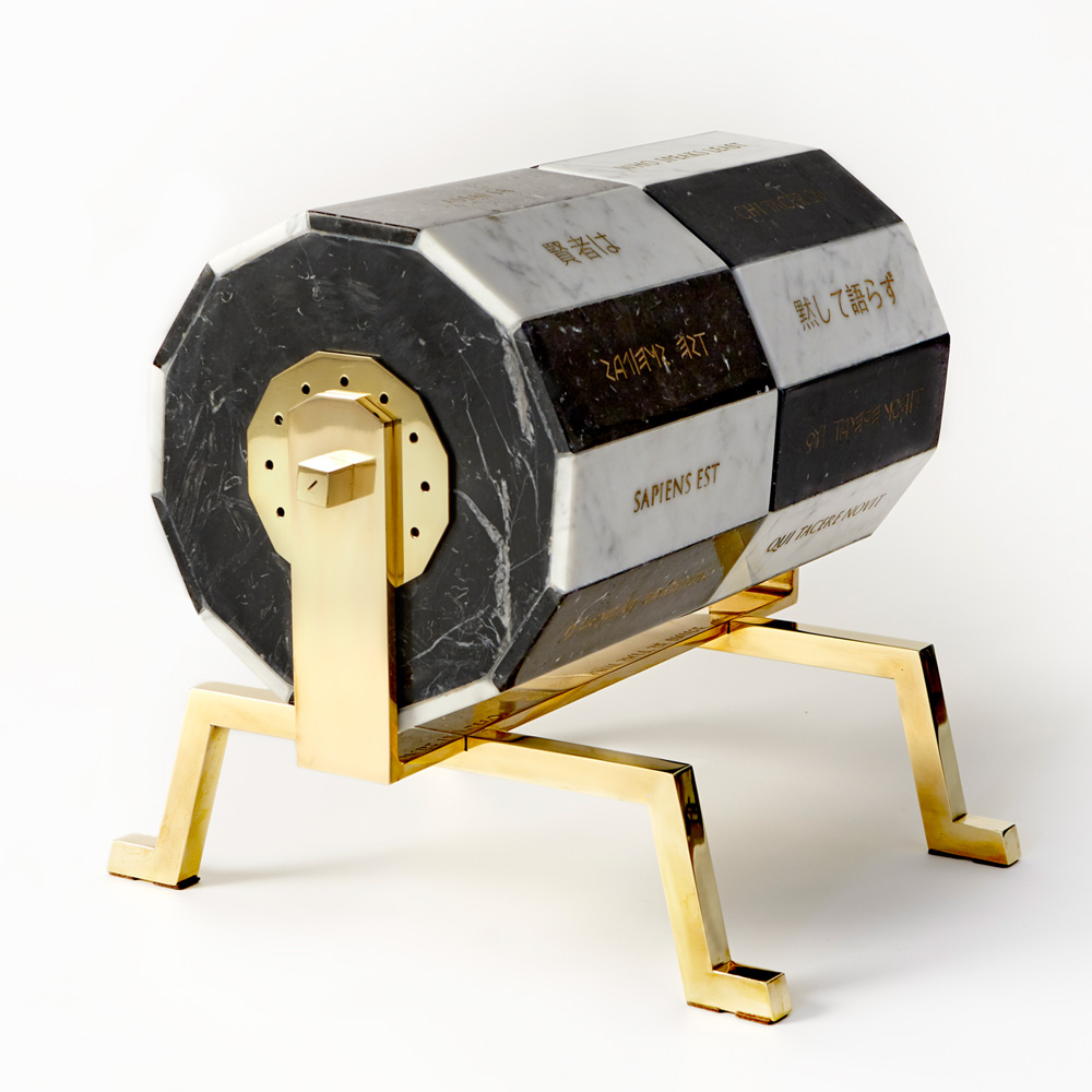 Attraverso scatti fotografici – che mostrano i ricchi buffet dei vernissage – e il ricorso alle parole dorate delle tele a sfondo rosso, l’artista rievoca l’atmosfera di una di quelle tante inaugurazioni del periodo pre-covid, tra gustose pietanze e il vociare assordante dei presenti. Con fare provocatorio, spinge il visitatore a distrarsi alla vista dei pappacchioni sui quali campeggia il motto Art is what makes food more interesting than art (L’arte è ciò che rende il cibo più interessante dell’arte). Al tempo stesso propone spunti di riflessione sul futuro dell’arte con l’opera Farlingotto (2020) che in 12 lingue insegna l’arte del silenzio.