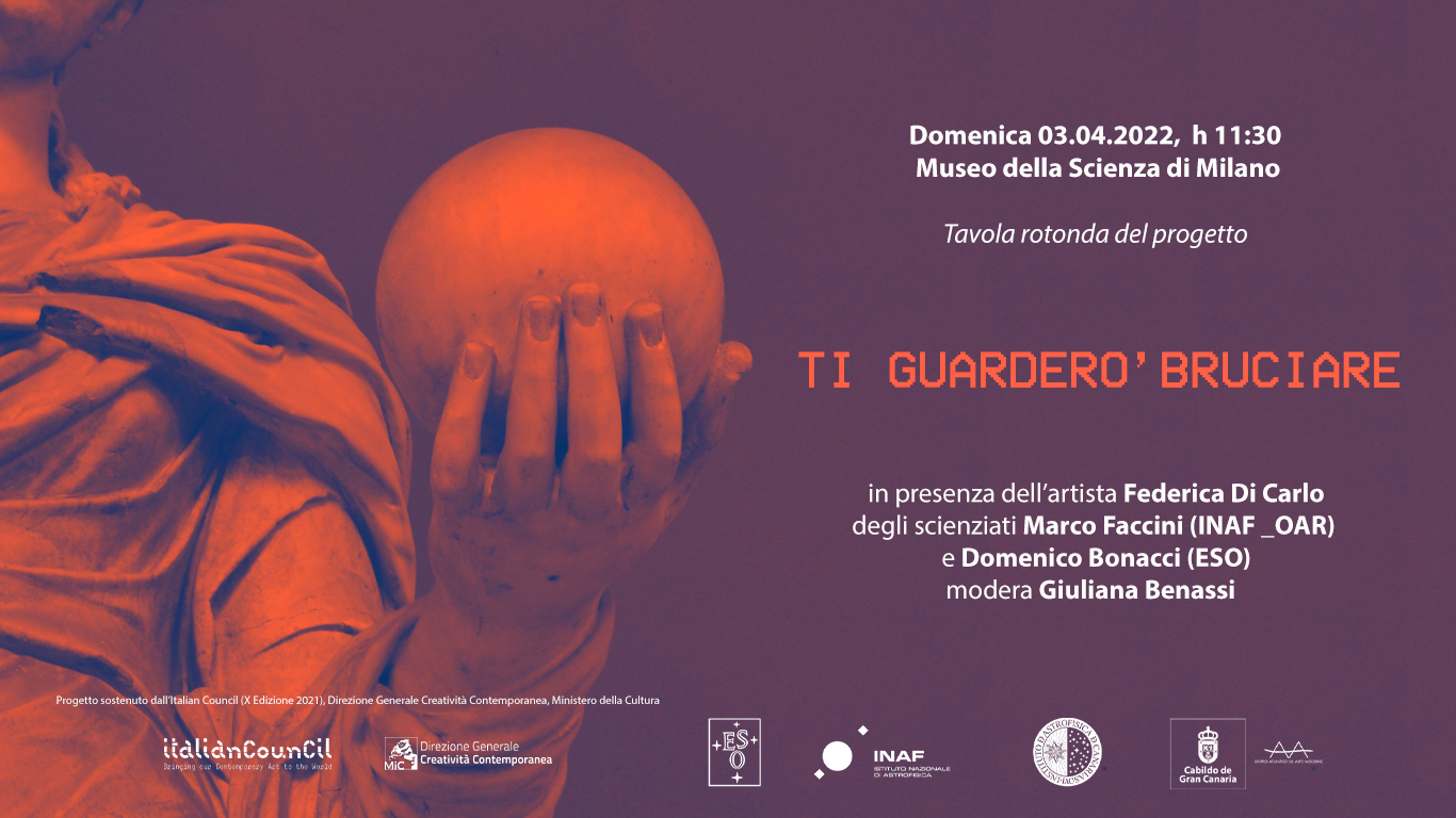 Come prima tappa di questo ottavo e ultimo itinerario, vi proponiamo una mattinata all’interno del Museo della Scienza e Tecnologia in zona San Vittore (M2/S. Ambrogio) per assistere, a partire dalle 11:30, al primo dei tre simposi Ti Guarderò Bruciare, appartenenti al progetto di ricerca Arte&Scienza di Federica Di Carlo, vincitore della decima edizione dell’Italian Council. Esperimento per un dialogo #atto1, è il primo di tre appuntamenti in cui l’artista racconterà le fasi dell’esperimento e gli sviluppi del progetto insieme alla curatrice Giuliana Benassi, all’astrofisico Domenico Bonaccini Calia e a Marco Faccini.