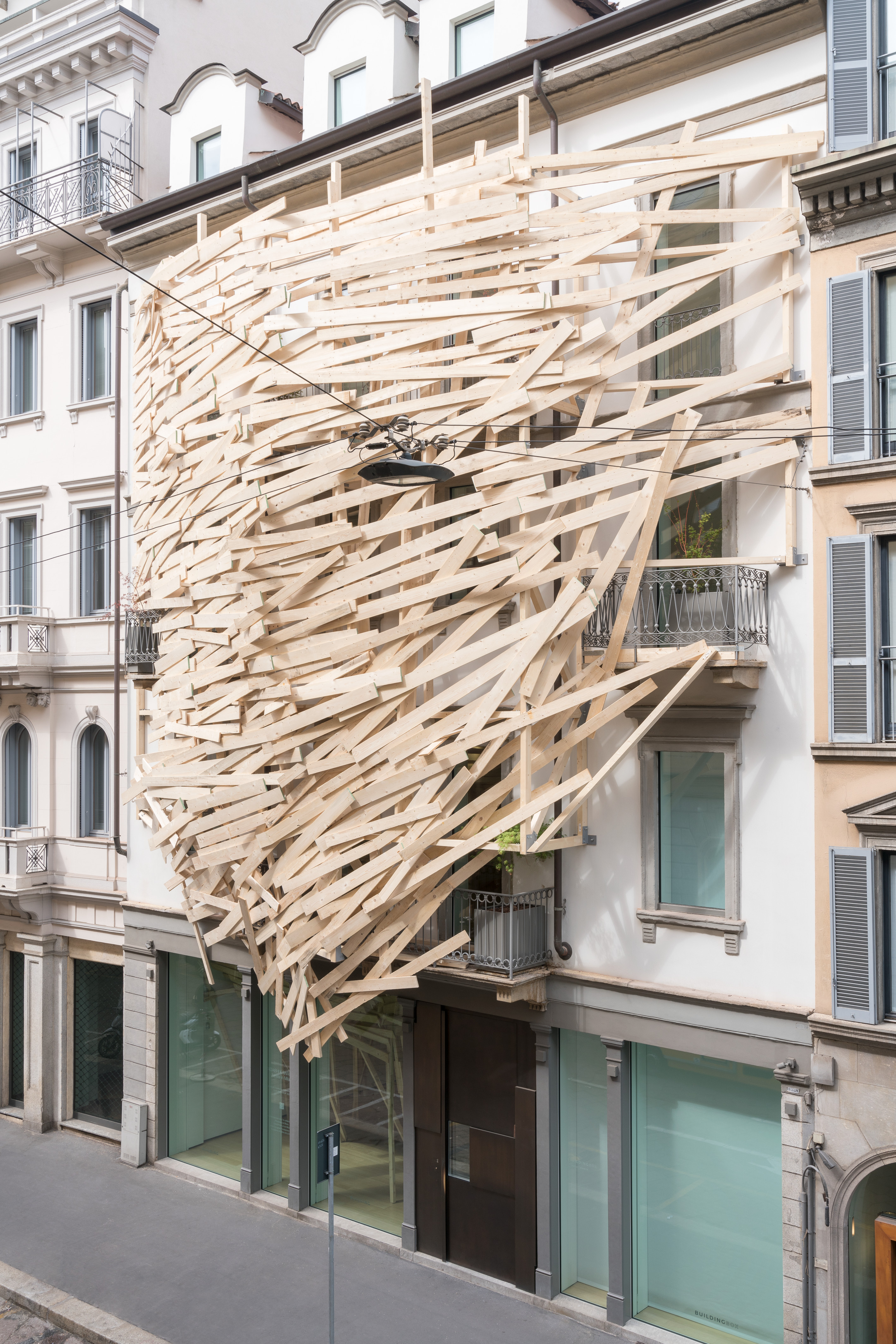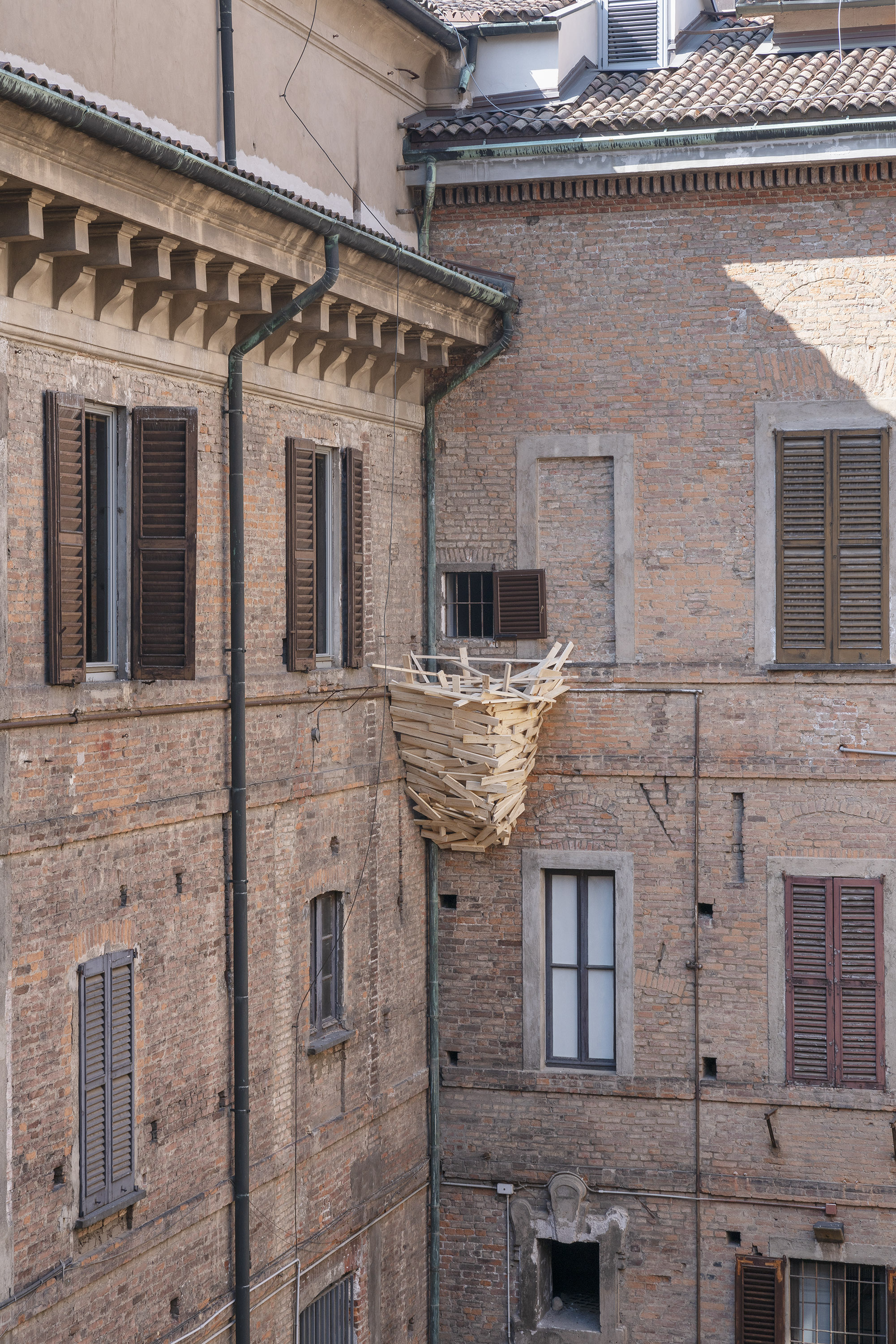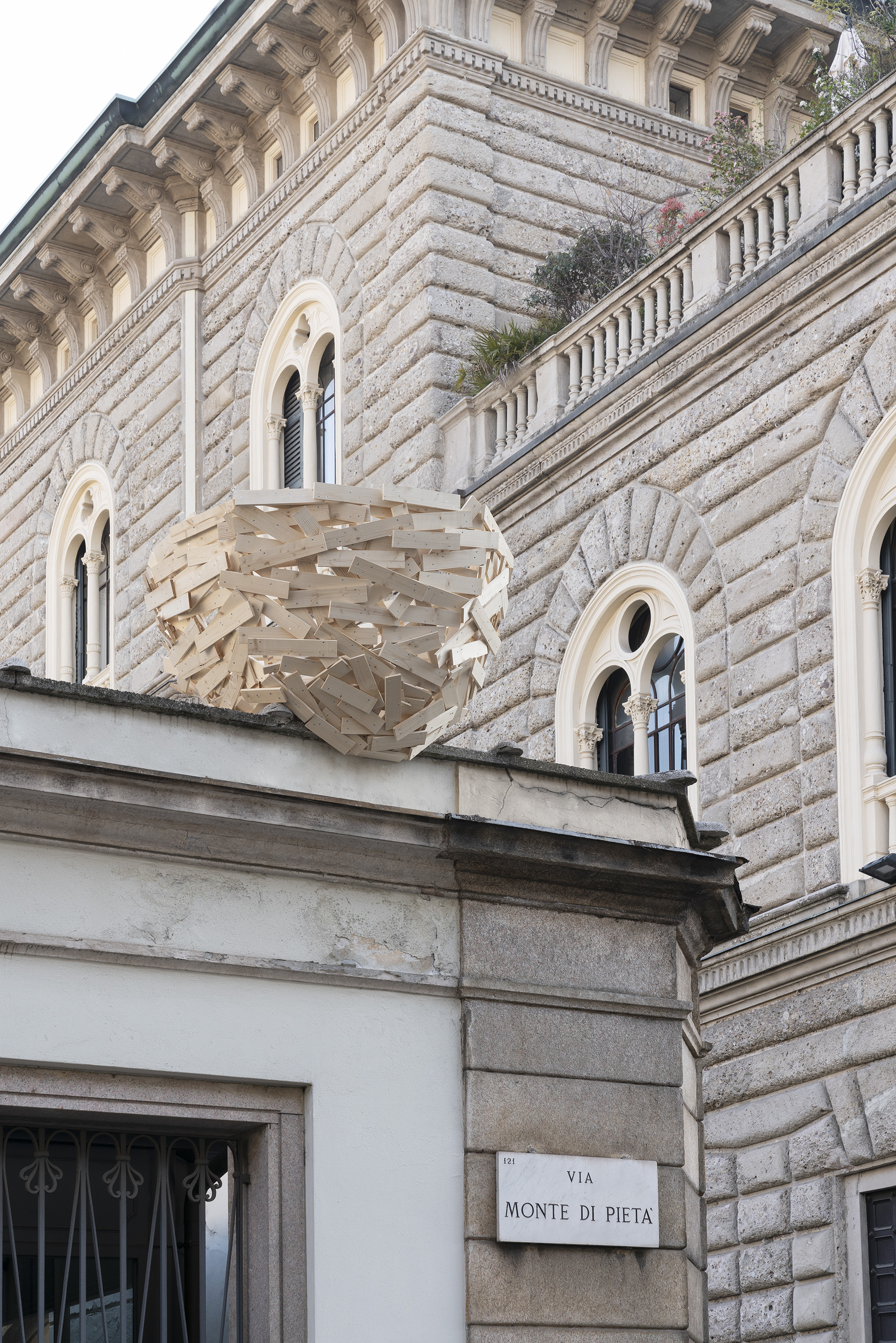 Abbiamo ancora un po’ di tempo prima della conclusione di quest’ultimo itinerario. Lo sfruttiamo per andare alla ricerca dei celebri grandi nidi che Tadashi Kawamata ha posto su alcuni edifici del Centro cittadino. In via Monte di Pietà (M3/Montenapoleone), presso il Centro Congressi Fondazione Cariplo, il Grand Hotel et de Milan, oltre che sulla facciata del palazzo che ospita la galleria Building, dove è anche possibile visitare la sua ultima personale a cura di Antonella Soldaini (Tadashi Kawamata. Nests in Milan). In via Brera, a Palazzo di Brera nel Cortile della Magnolia e infine all’ingresso del nuovissimo ADI Design Museum in Piazza del Compasso d’oro (M2/Moscova; M5/Cenisio).