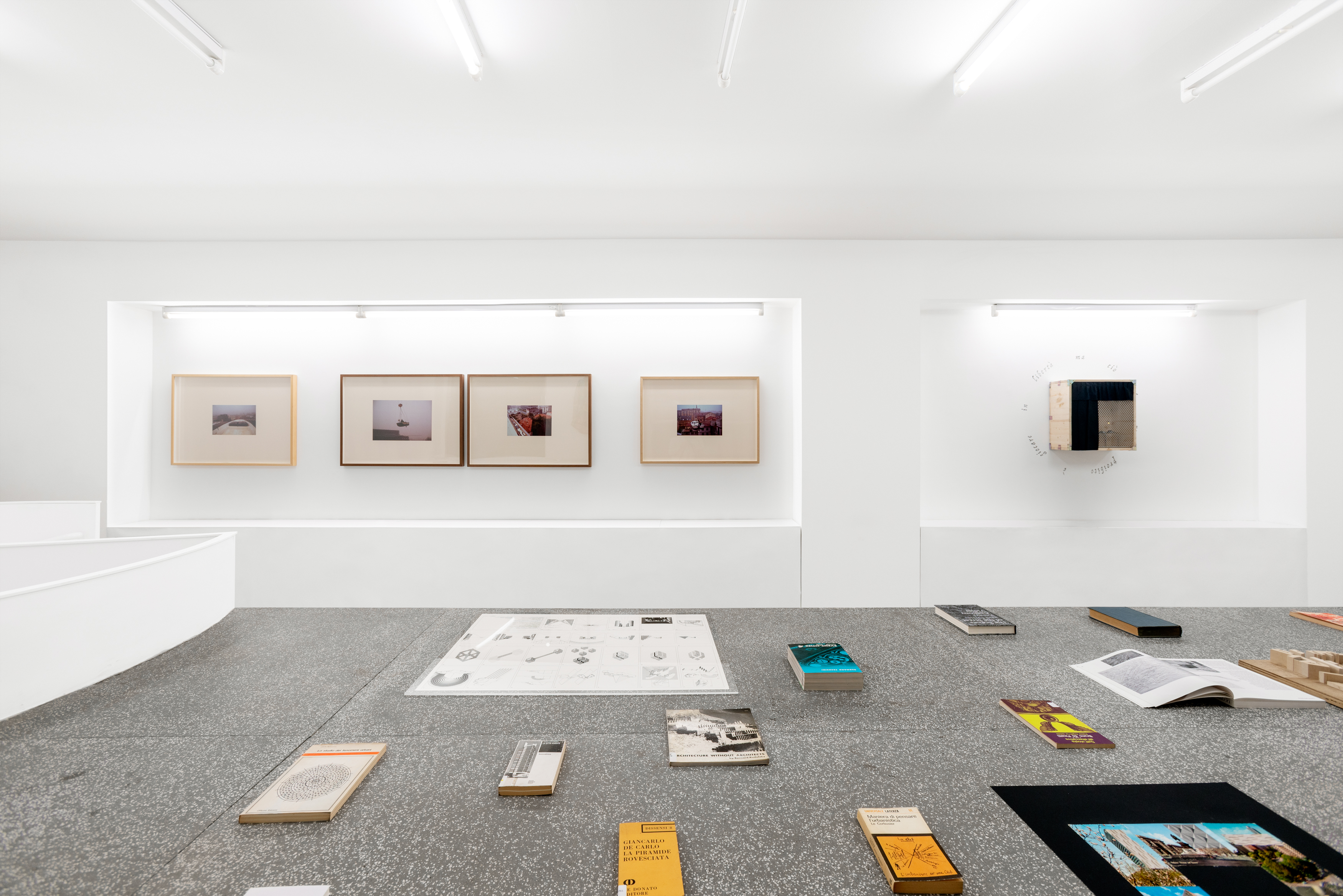 Al piano superiore un grande tavolo accoglie una rassegna di libri e materiali che ha animato la genesi e alimentato lo sviluppo della mostra. I testi sono lasciati alla libera consultazione dei visitatori come forma d’invito a ripensare il futuro della città. La teoria che le metropoli del passato – e quelle del presente – non dovessero seguire soltanto logiche funzionaliste è stata ripresa da una moltitudine di pensatori del secolo scorso e contemporanei. L’attualità delle proposte teoriche degli anni ‘60 e ‘70 è anche purtroppo motivata dalla mancata attuazione delle stesse, e la loro centralità nel dibattito contemporaneo conferma l’emergenza della riflessione e l’importanza dei contributi degli artisti visivi. Alle pareti sono appese quattro fotografie che testimoniano la performance Volver che Giorgio Andreotta Calò fece nel 2008 nel quartiere di Lambrate. A bordo di un barchino appeso a una gru, compie una simbolica traversata del cielo sul quartiere che in quegli anni era investito dal fenomeno della gentrificazione. Elisa Giuliano e Chiara C. Siravo racchiudono e condensano in un’architettura in miniatura (Cosa da poco, 2021) varie ricerche condotte sui luoghi della città deputati all’educazione femminile, sia ecclesiastica che laica. Improntata su una scuola media del quartiere di Affori che per prima istituì, negli anni ’70, le 150 ore di studio serali per le donne e il convento di clausura di San Paolo Converso, la riflessione si sposta sul tema della libertà, tanto emancipatrice se conquistata attraverso l’istruzione, quanto sacrificata se guadagnata ricorrendo all’autosegregazione.