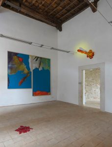 Qui la comunità artistica emergente appare felice e perfettamente integrata con le stratificazioni storiche , al di là della dimensione asettica del white cube, come si nota in una delle sale più intense, con gli interventi di Alessandro Giannì e Diego Miguel Mirabella mimetizzati con i lacerti di affreschi presenti alle pareti. Il culmine del percorso è la piccola cappella del palazzo, affrescata da un pittore anonimo del Quattrocento battezzato da Federico Zeri – frequentatore abituale del paese abruzzese – con il nome di Maestro degli affreschi di Tagliacozzo. Qui Sonia Andresano ha collocato Atto di candore (2021), un piccolo video dal sapore metafisico, in dialogo perfetto con i santi e le madonne presenti sulle pareti: il tocco finale di una mostra interessante nella sua ecumenica poliedricità, che restituisce la dimensione eclettica di una scena emergente che ha avuto la prima occasione pubblica di presentarsi nella sua natura variegata e vitale, prima di ogni possibile e auspicabile istituzionalizzazione. Se la mostra registra in maniera puntuale un clima che appare quanto mai fecondo, lo spazio espositivo sembra ormai pronto per sfide ancora più grandi, in una regione dove il contemporaneo sta muovendo i primi passi, dal Maxxi L’Aquila a Straperetana, con una consapevolezza sempre più elevata.