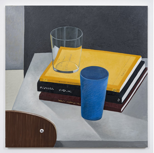 Durante gli anni ’80, hanno ricordato le gallerie nel comunicato stampa, Nathalie Du Pasquier è stata una figura chiave nel Gruppo Memphis, il movimento milanese nel design postmoderno guidato da Ettore Sottsass. Nel 1987, Du Pasquier ha accantonato il lavoro di designer per dedicarsi esclusivamente alla pittura. Per i tre decenni successivi l’artista ha condotto le proprie ricerche nell’ambito della natura morta, basandosi su composizioni di oggetti di uso quotidiano organizzate nel suo studio, e sulle raffigurazioni di costruzioni in legno tridimensionali, che hanno svolto la funzione di modelli per le sue prime composizioni astratte.