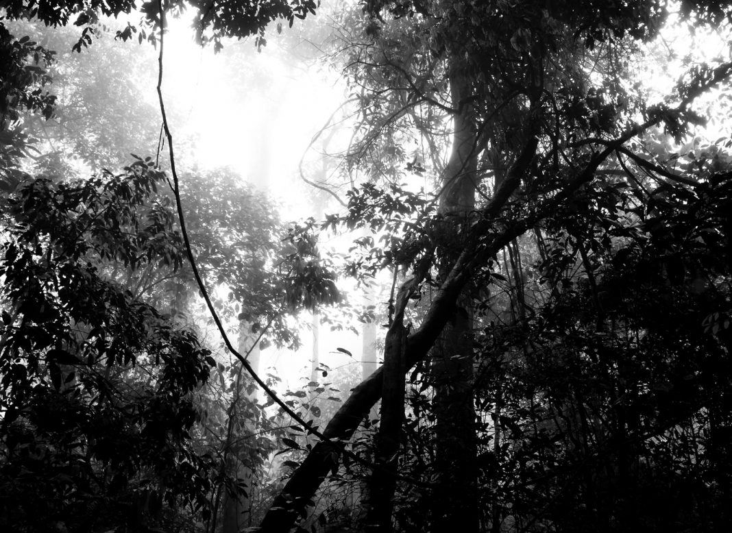 Le fotografie della foresta sono state tutte scattate in un unico luogo, nel corso di circa tre ore. Questa serie tenta di catturare un momento in cui la percezione è alterata dall’invasione della foresta da parte delle nuvole, ampliandone i confini. Lo scenario stesso era quasi monocromatico e tutti i colori erano tenui. Il testo che accompagna la serie è una voce nel diario di viaggio del “Paradise in the New World”, che specula sulle ramificazioni fenomenologiche di tale esperienza. Le immagini risultanti assomigliavano così tanto a dipinti a inchiostro nero che le ho stampate su carta ad acquerello.