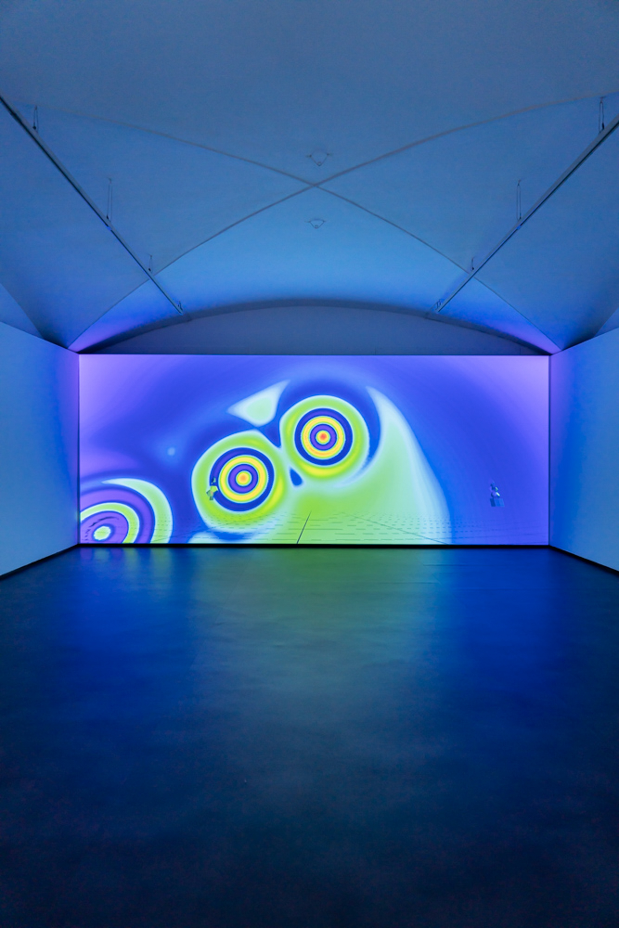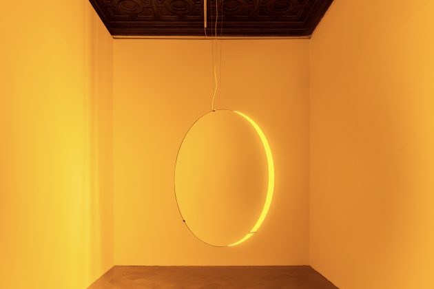 Ma nel palazzo ci sono anche molti lavori che hanno segnato la carriera di questo artista scienziato che lavora con uno studio simile alle antiche botteghe rinascimentali. Dove con un team di artigiani, architetti, archivisti, ricercatori, amministratori, cuochi, programmatori, storici dell’arte e tecnici specializzati studia e progetta per sostenere la sfida continua del mettere in dialogo arte, tecnologia e scienza. Tra le venti le opere, alcune ormai leggendarie come Beauty (1993), opera iconica dove si vede un arcobaleno creato dalla luce proiettata e riflessa sulle gocce d’acqua di una sorta di cortina di nebbia; Solar Compression (2016), un disco circolare, in movimento con all’interno una luce gialla che occupa l’ambiente. Oppure Room for one color (1997) dove in uno spazio vuoto la percezione degli spettatori è alterata dall’immersione nella luce di lampade monofrequenza che trasforma i colori in sfumature di grigio, giallo e nero. Accentuando la visione per ogni spettatore.