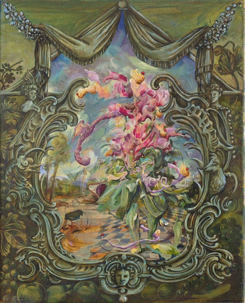 Iain Andrews, Boucherula Rutundifolia (2024), olio e acrilico su tela, 50 x 40cm. Foto Zima Studio; crediti Galleria Gaburro