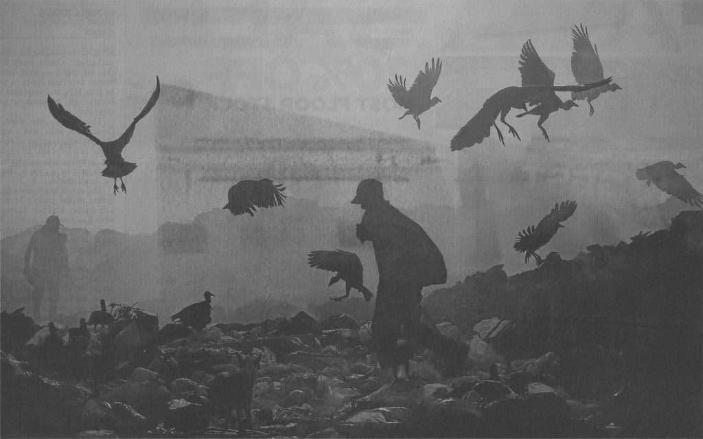 Le immagini nelle sale al piano terra e in scorrimento sul ledwall sono i Desastres, sempre presentati a Venezia e il cui titolo omaggia Goya, trenta enormi dipinti serigrafici in grayscale di animali, opere d’arte, città distrutte, rivolte politiche, uomini armati, mappe satellitari di piattaforme online.