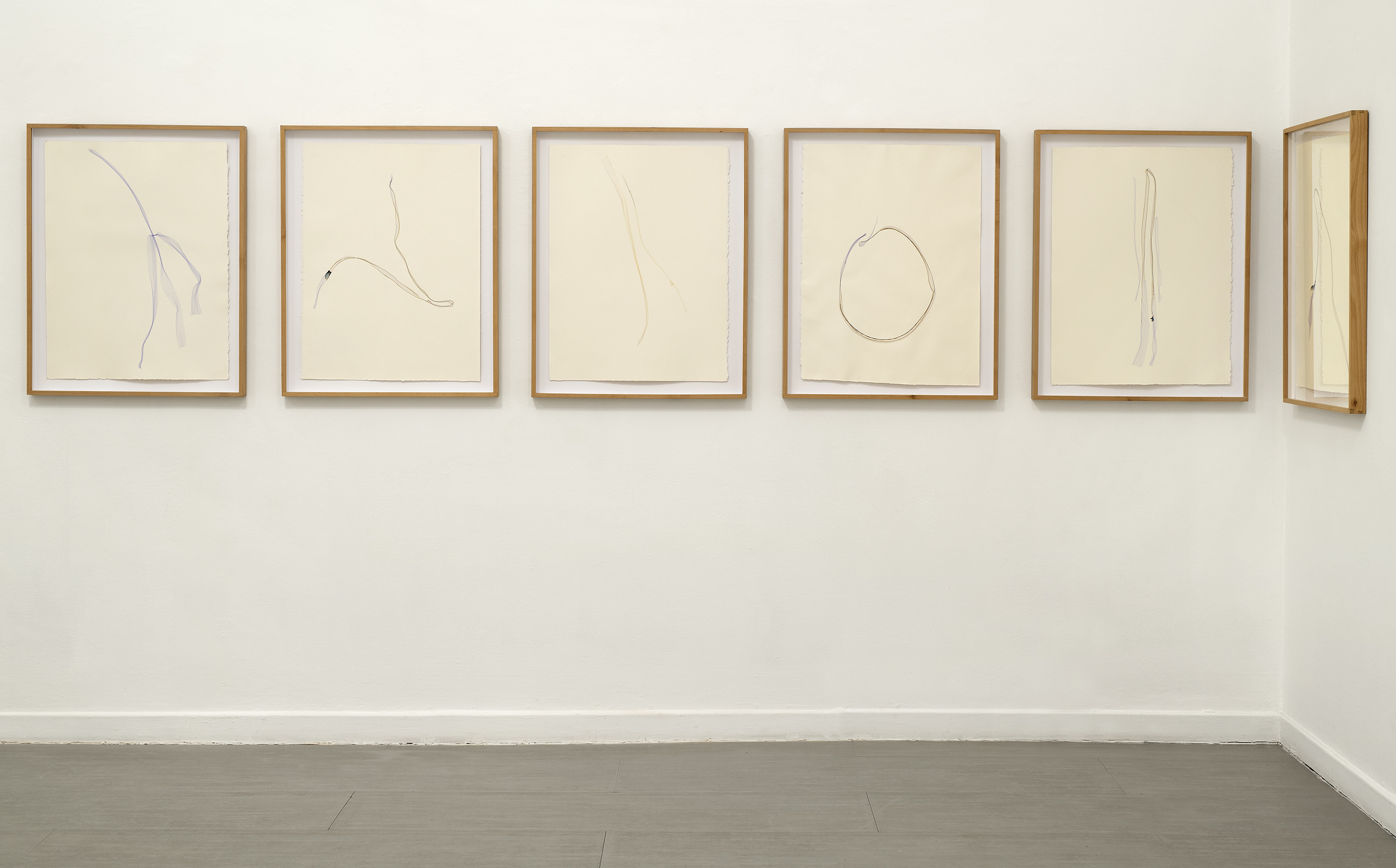 «La tecnica consiste nel recuperare l’emulsione fotografica che apparteneva a dei miei lavori precedenti. Sono dei ritagli di polaroid da cui ho staccato l’emulsione dal supporto originario e l’ho trasferita sulla carta da acquerello. Dovevano risultare dei filamenti, delle tracce flebili, perché è quello che rimane della memoria quando si crea un vuoto. Il movimento di queste tracce è dato dall’acqua che riesco a controllare così da creare dei disegni. Il lavoro era cominciato cercando di rappresentare l’idea del vuoto, del distacco e del recupero. Per questo ho voluto realizzare delle tracce e per tale motivo ho scelto di lavorare su dei miei lavori passati, perché doveva essere qualcosa che appartenesse alla mia memoria».