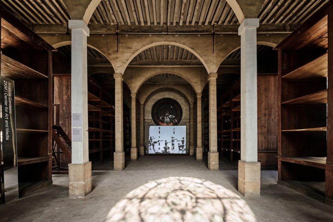Un piano è poi dedicato alle opere acquisite dallo ZKM — Urs Lüthi, Untitled 1973 in cui l’artista guarda impassibile in camera mentre una mano femminile accarezza il suo volto e Analivia Cordeiro (1954, São Paulo), M3x3 1973 video che testimonia il movimento di 9 ballerine che eseguono una coreografia costruita secondo movimenti suggeriti dalla tecnologia del computing. Anche il design del palco (una griglia con linee nere e spazi bianchi) e i costumi suggeriscono una fusione tra corpo e spazio, in un approccio minimale e geometrico.