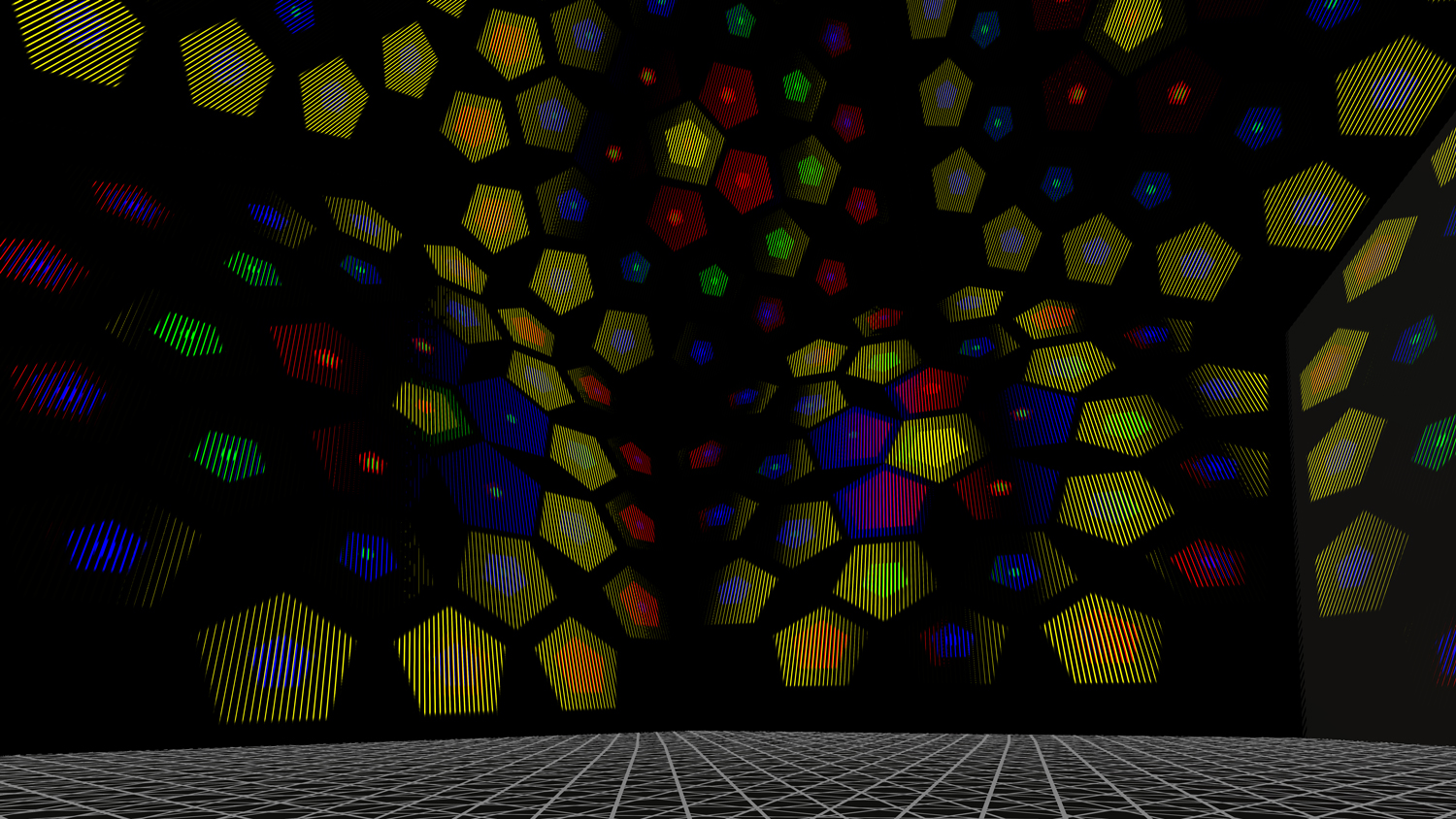 In “Your view matter”, gli utenti possono muoversi attraverso una progressione di spazi geometrici sempre più grandi e, alla fine, raggiungere una sfera. L’architettura di questi spazi virtuali si basa sui cinque solidi platonici: tetraedro, ottaedro, icosaedro, dodecaedro e cubo. Queste forme sono animate da effetti di interferenza moiré, che cambiano anche repentinamente, in risposta ai movimenti e al coinvolgimento dello spettatore.