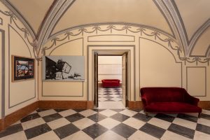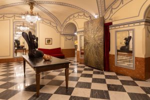 Nella scenografia liberty del Salone Margherita, le opere di sedici artisti del Novecento e contemporanei, parte della Collezione d’Arte della Banca d’Italia, intessono un dialogo che oltrepassa spazio e tempo, in un gioco di rimandi che riaccende gli ambienti storici del café-chantant romano. La mostra, a cura di Pier Paolo Pancotto, si inserisce in un percorso di ripristino e valorizzazione dell’immobile di proprietà della Banca d’Italia, che negli anni ha visto alternarsi momenti di sovraesposizione mediatica – il Salone ospitava il varietà televisivo Il Bagaglino – a fasi di totale abbandono. Oblio che, come spesso accade, ha giocato un ruolo cruciale nella conservazione della memoria e dell’identità del teatro, impedendo la sua conversione a destinazioni d’uso inappropriate. Ciò ha permesso alla gestione non solo di rilanciare la funzione culturale del luogo, attraverso una programmazione artistica di qualità, ma anche di contribuire alla sua valorizzazione e conservazione nel tempo, grazie a un importante restauro e all’apposizione del vincolo di tutela sull’immobile e sugli arredi in esso contenuti.