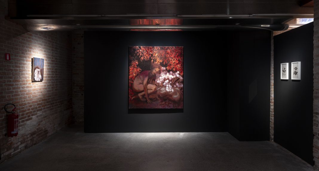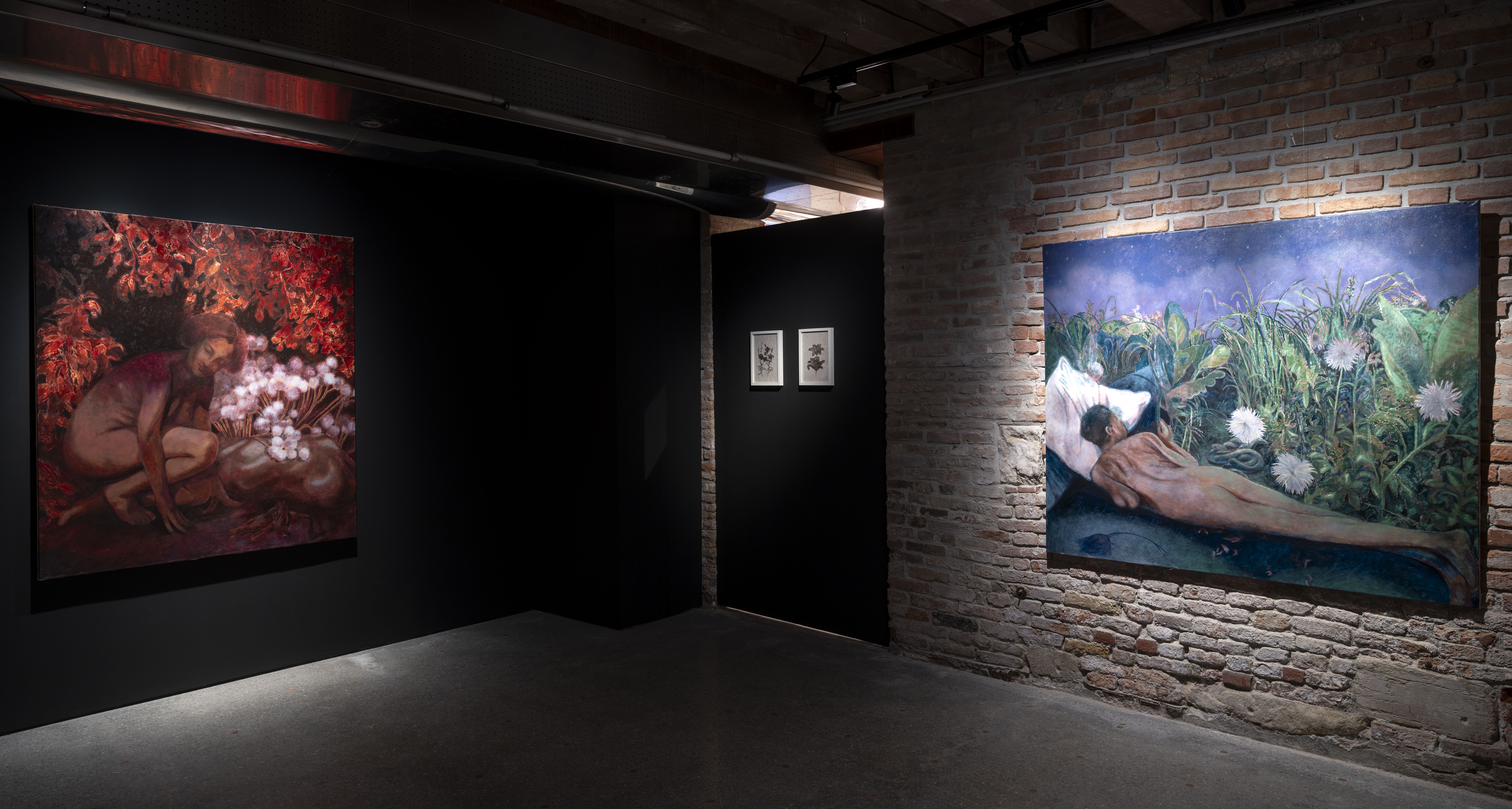 Liggieri «Tutto è cominciato nell’estate del 2024, quando ho visitato una mostra nella project room di Ca’ Pesaro e ne sono rimasto affascinato. Mi sono detto: “Qui ci starebbe un progetto che sappia dialogare con l’intimità di questo spazio”. Ne ho parlato con Christian, direttore dello Spazio San Vidal, e da lì è cominciato un confronto su chi potesse dare forma a questa intuizione. Il nome di Eleonora è emerso con naturalezza. Poco dopo, sono andato a trovarla in studio, in Friuli, e le ho proposto l’idea. Ma il progetto vero e proprio ha preso forma solo all’inizio del 2025, in un periodo in cui Eleonora stava anche affrontando un trasferimento a Parigi. In quei mesi ci siamo immersi in un flusso di letture, visioni, riflessioni: dal Libro Rosso di Jung ai testi sulla psichedelia, fino alla biografia di Keith Richards. Tutto contribuiva ad alimentare un paesaggio mentale da cui sono emerse le opere. Confesso che anche i sogni hanno avuto un ruolo nel mio percorso: alcuni di essi, in quel periodo, sono stati talmente vividi da sembrare rivelatori. Sono stati come appunti notturni per la scrittura del testo curatoriale e per l’elaborazione del progetto nel suo insieme».