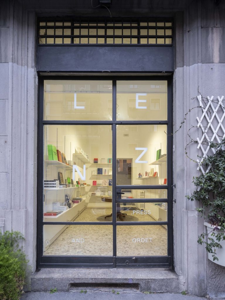Al numero 10 della stessa via apre la prima flagship store di Lenz Press, casa editrice nata dopo Mousse sempre per volontà di Bonaspetti e dedicata alle arti, di cui saranno disponibili le edizioni dal 2020 in poi. «La libreria sarà in dialogo con Ordet e lo spazio espositivo ci permetterà di organizzare presentazioni dei nuovi titoli e di ospitare eventi di approfondimento su tematiche per noi rilevanti. Sono due anime che si relazionano», racconta il fondatore. «Il libro ha prima di tutto una fisicità, è un oggetto che si sfoglia e si tocca. Avere un luogo nostro in cui le persone possano vederli e viverli è per noi una grande gioia». Tra i titoli, numerosi cataloghi e libri d’artista, la prima monografia di Caroline Poggi e Jonathan Vinel, Tomaso Binga: Euforia, La serie pubblicata con lo Swiss Institute di New York e la collana di saggi brevi legati ai progetti artistici site-specific commissionati da GAMeC. «Al momento lavoriamo a una monografia di Charlotte Posenenske, un’artista tedesca che amo molto. Stiamo costruendo il libro in maniera originale, ripensando i modelli classici di una pubblicazione monografica».