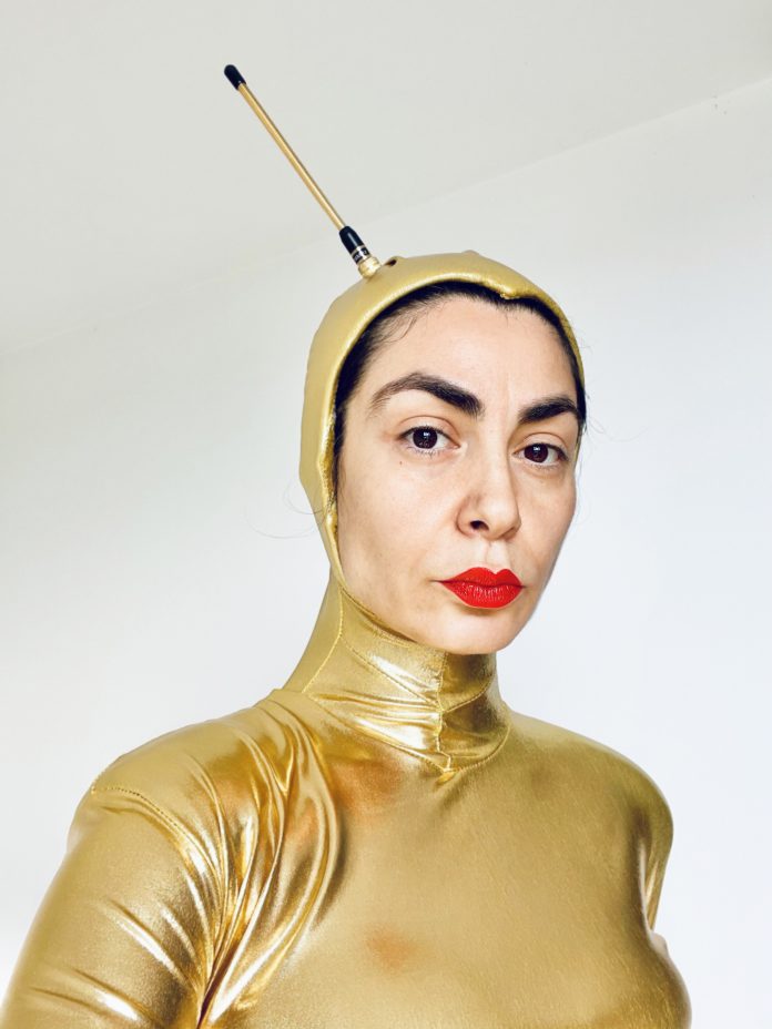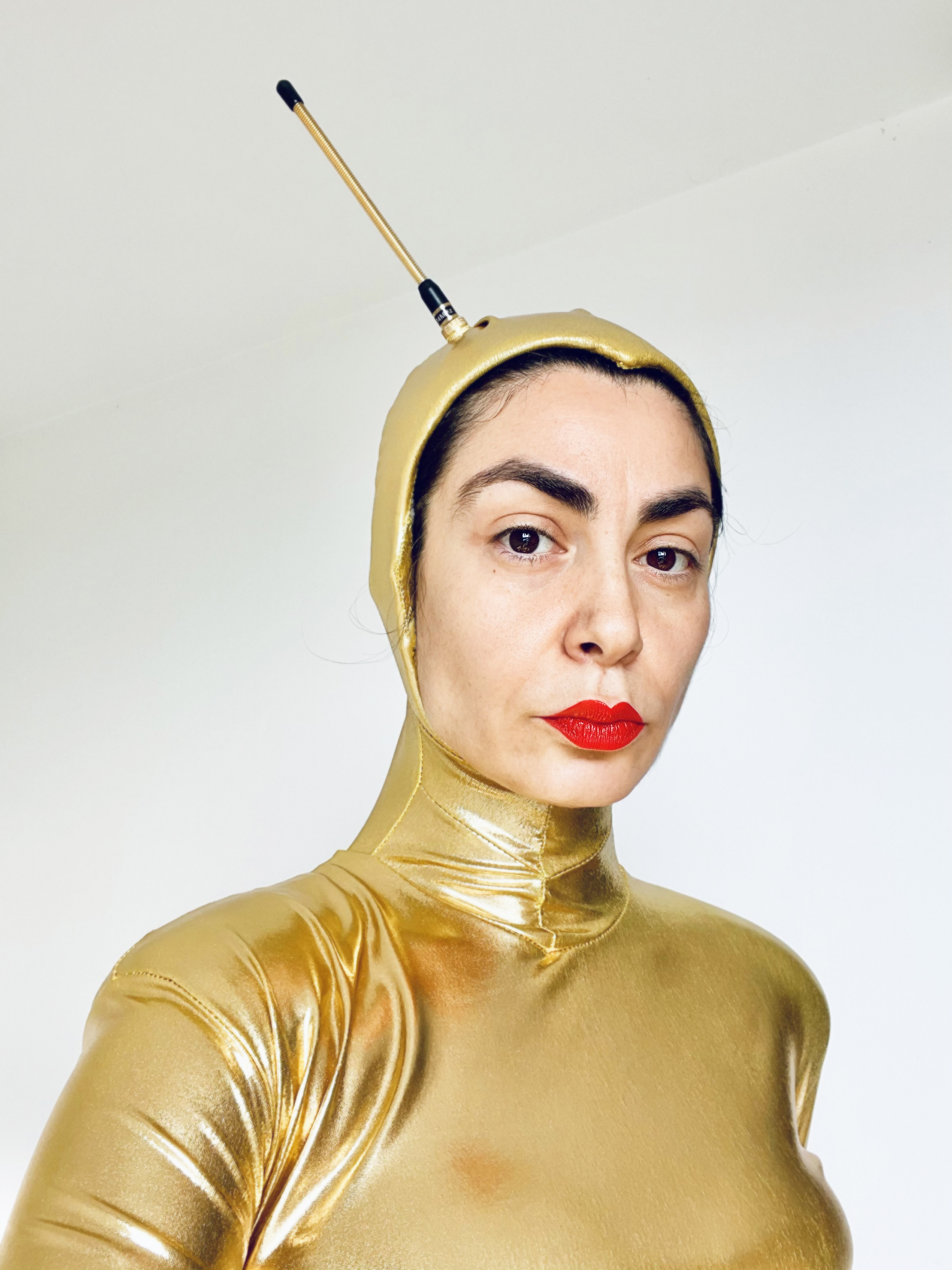 «Viviamo in un mondo in cui le nostre identità, la reale e le virtuali, coesistono inevitabilmente e si impongono nelle nostre vite. Come individuo e come artista, ho sempre cercato di mantenere la stessa identità: farla coincidere nella sfera pubblica come nelle privata. L’ io persona e l’io artista coincidiamo. È una scelta voluta e pensata da anni. Quando creo un’opera autoreferenziale o una performance, la realizzo essendo me stessa, non mi travesto, non mi maschero, non creo un personaggio. Anche nel caso in cui, utilizzo un attrezzo determinato o un abito specifico, come per esempio nel caso di LA NUOVA ARMATURA (2020) e ANTENNA GIRL (2021), lo indosso essendo me stessa. Questa riflessione, apparentemente semplice, è una decisione in certi casi difficile, perché implica creare l’arte nel rispetto dell’autenticità. Per questo le opere che realizzo mantengono, indipendente del formato che le supporta, un componente umano, dettato dall’incontro tra forza e fragilità. Ho conosciuto diverse persone ed artisti che lavorano con identità differenti, spesso paradossalmente distanti e opposte. Questa possibilità, senza dubbio permette di spaziare esplorando situazioni e identità diverse e contrastanti, però spesso si trasforma in un gioco pericoloso. Quando si vestono troppe maschere, si dimentica il volto di chi le indossa».