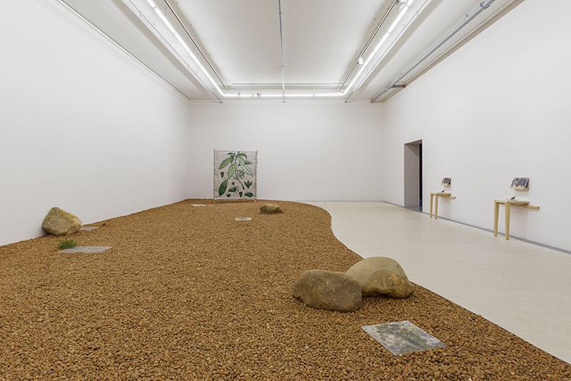 «Quando ho cominciato il progetto volevo partire dai sassi», ci raccontava l’artista, in una nostra intervista in occasione della mostra al Castello di Rivoli. «Come quando si scala una montagna e poi ci si stende su una roccia che diventa un letto morbido. Da qui parte tutta la mostra. I due tappeti ricordano le forme di minerali come il quarzo e la malachite. C’è la fluidità del paesaggio, l’acqua, la terra. Il paesaggio è inserito in ogni singolo elemento. E anche in questo caso ho voluto immettere elementi legati al corpo. Elementi che possano essere usati per il corpo, con il corpo. Quei tappeti diventano uno spazio performativo».