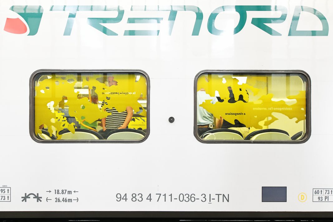 BienNolo è sempre più fuori dai luoghi comuni dell’arte ma dentro il dinamismo di Milano e, quest’anno, sale anche in treno. Da oggi e fino al 10 ottobre, infatti, su una carrozza di Trenord troverete il progetto di Igor Eškinja (1975), dal titolo Paesaggi Imprevisti, sulle linee Como-Saronno-Milano-Asso e S1 Saronno-Milano-Lodi. Come scoprire l’opera? Basta salire sul primo convoglio-opera dove, tra le altre frasi scritte con le lettere di colore giallo brillante, troverete “Il paesaggio scorre, come frasi sentite da un finestrino”, un monito per intraprendere un viaggio nel viaggio sospeso tra dentro e fuori uno spazio chiuso e aperto insieme.
