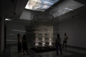Così nella prestigiosa sede del Palazzo del Governatore l’opera poli-autoriale Anemos di Edoardo Tresoldi, Studio Azzurro e Max Magaldi accoglie il visitatore in una dimensione bordeline tra reale e virtuale e lo avvolge in un’esperienza multisensoriale dove coesistono dimensione scultorea/architettonica, proiezioni visive e sonorizzazioni. Un’opera che racconta il respiro dell’evoluzione di una giornata nel suo passaggio che non manca di stupire per l’interazione che nasce con lo spettatore che diventa parte integrante dell’installazione.