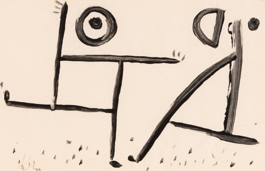 La metà della sua fertile produzione al confine tra pittura, poesia e la musica- che comprende circa novemila opere- è costituita da disegni, in cui la linea spezzata, continua, sincopata, melodica, comunque ritmica, nelle sue infinite variabili espressive, volta alla riduzione formale e ispirata dall’arte preistorica; è la sua cifra distintiva, dalla sorprendente immaginifica creatività.
