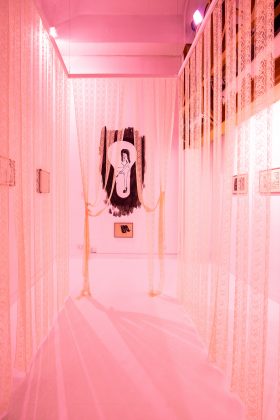 Frammenti di vita vissuta, che Alexandra Lopez ha consegnato direttamente a una dimensione iperbolica: far guardare sé stessa, transessuale, da un buco della serratura gigante e in trompe l’oeil. La toilet – vera s’intende, quella della Pinksummer – con la vagina disegnata e appesa proprio sopra il water, è un’istallazione che può racchiudere aspirazioni personali. E, perché no, polemiche a presa nazionale: la querelle Elisabetta Gardini/Vladimir Luxuria in quel di Montecitorio ormai è leggenda.