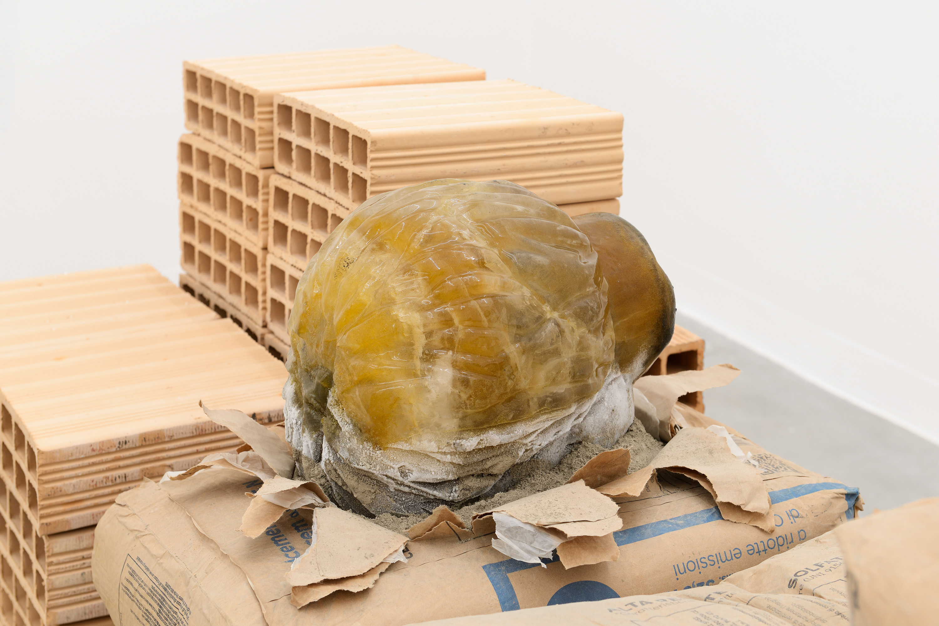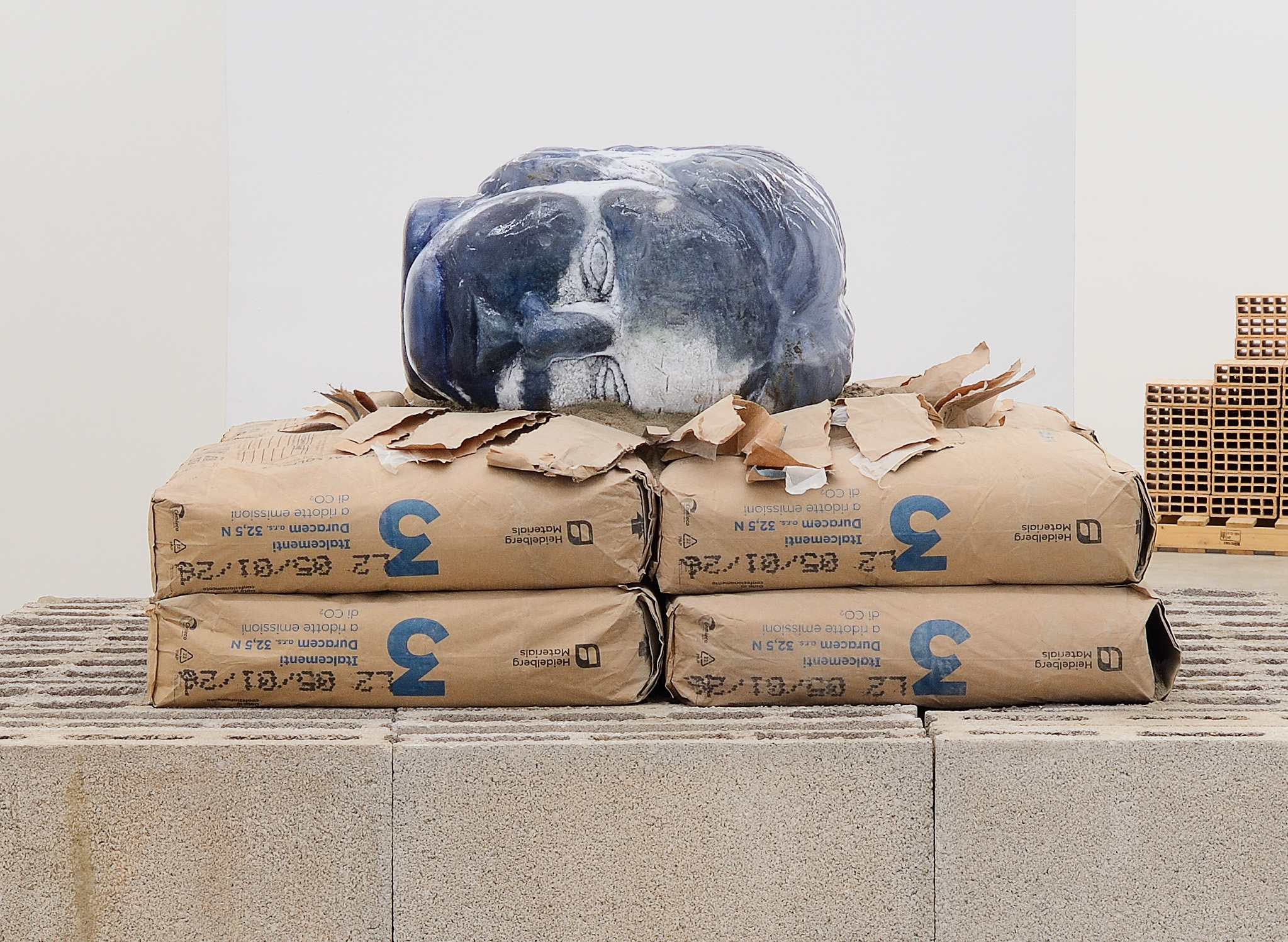 Di fatto, la mostra è un cantiere: «In galleria ho provato a ricostruire uno smorzo, il deposito di una cava dove i materiali sono in attesa di diventare architettura, la loro disposizione non ha uno scopo estetico commerciale, ma solo di logistica di movimentazione dei carichi e questa mancanza di estetica mi affascina molto e cerco spesso di riportarla nei miei lavori».