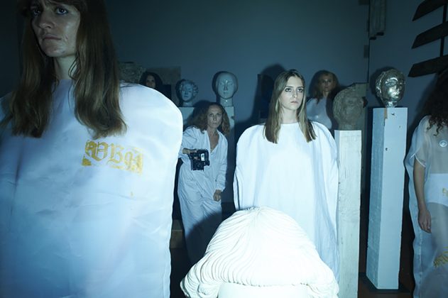 Il terzo problema è la collaborazione di Beecroft con la moda. Non lo è chiaramente di per sé, ma nel modo in cui crea la sua opera scultorea e la sua performance. Le sculture sono tutte dei (quasi) autoritratti posizionati come una posa da sfilata. Le modelle, nei capi indossati, hanno stampato il marchio VB94 in oro, proprio come se Beecroft stessa fosse un marchio, come se venisse strizzato l’occhio più alla moda che all’arte, che fa del pensiero astratto un pensiero sociale. L’intenzione dichiarata dell’artista è mostrare un ideale di donna che rincorre se stessa in un modello di perfezione, una sorta di canone. È forse per questo che le modelle indossano delle scarpe dorate? O per strizzare nuovamente l’occhiolino al glamour?
