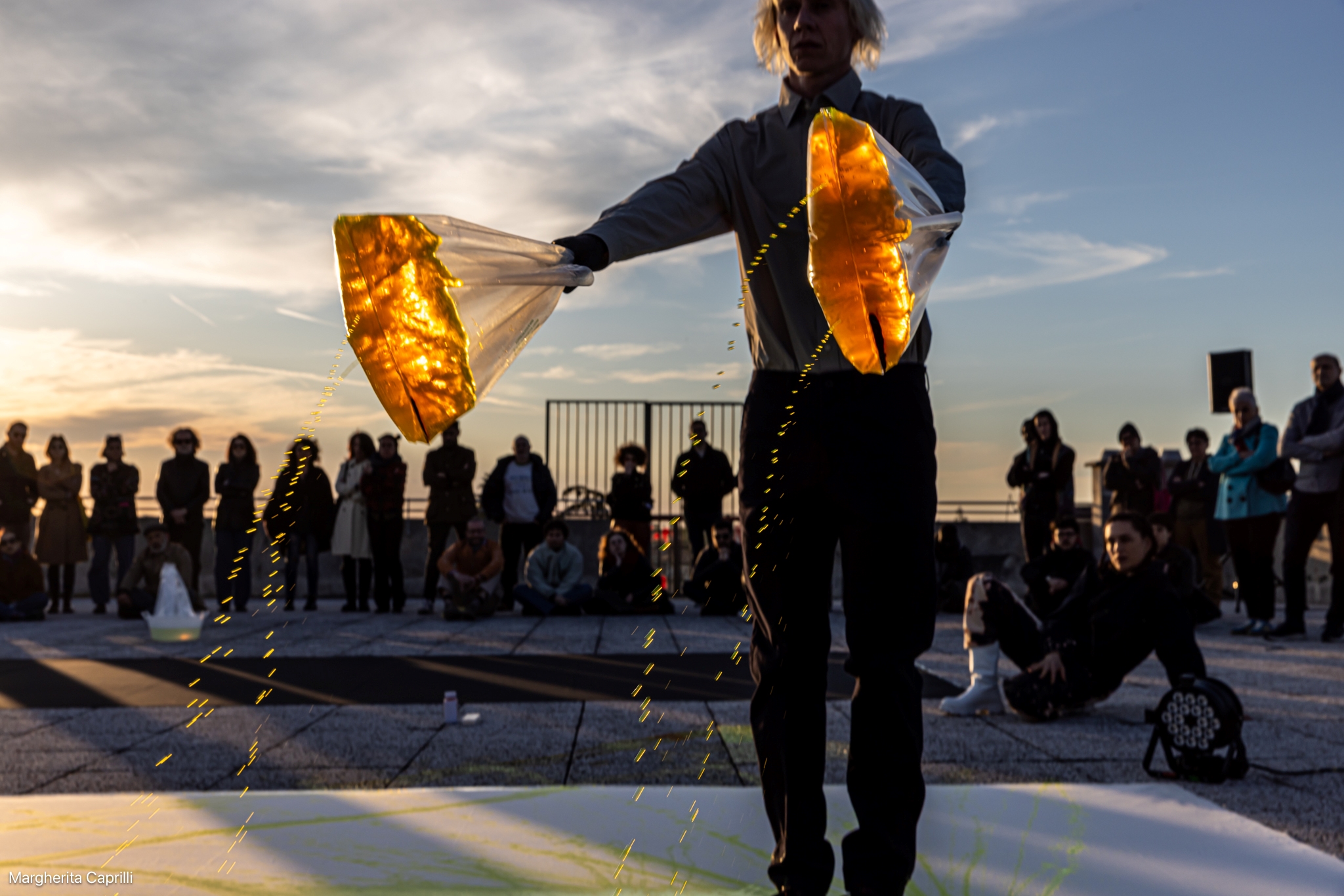 PERFORMATIVE ha proposto la ricchezza della sua eterogeneità, risultando in definitiva una vera e propria risorsa per stimolare riflessioni multiple sul concetto politico di partecipazione attraverso vere forme radicali di sperimentazione; è l’esempio di come la performance contemporanea possa non solo interagire con lo spazio museale, ma anche con il territorio circostante e la comunità locale. La volontà è quella di radicarsi nella città, promuovendo il dialogo tra il pubblico e gli spazi urbani attraverso la partecipazione, ponendo l’accento su come possa accadere che gli spazi pubblici siano progressivamente diventati luoghi svuotati di comunicazione umana diretta. Tutto questo è andato oltre la semplicistica visione estetica, ma destinando al pubblico una fruizione attiva collocandolo in una sfera di micro-comunità, portando i coinvolti a riflettere sull’ impatto delle proprie dinamiche sociali e culturali. Hanno collaborato alla curatela Chiara Bertini, Fanny Borel, Anne Palopoli e Donatella Saroli del MAXXI ed Elena Bellantoni e Silvano Manganaro, docenti dell’Accademia di Belle Arti.
