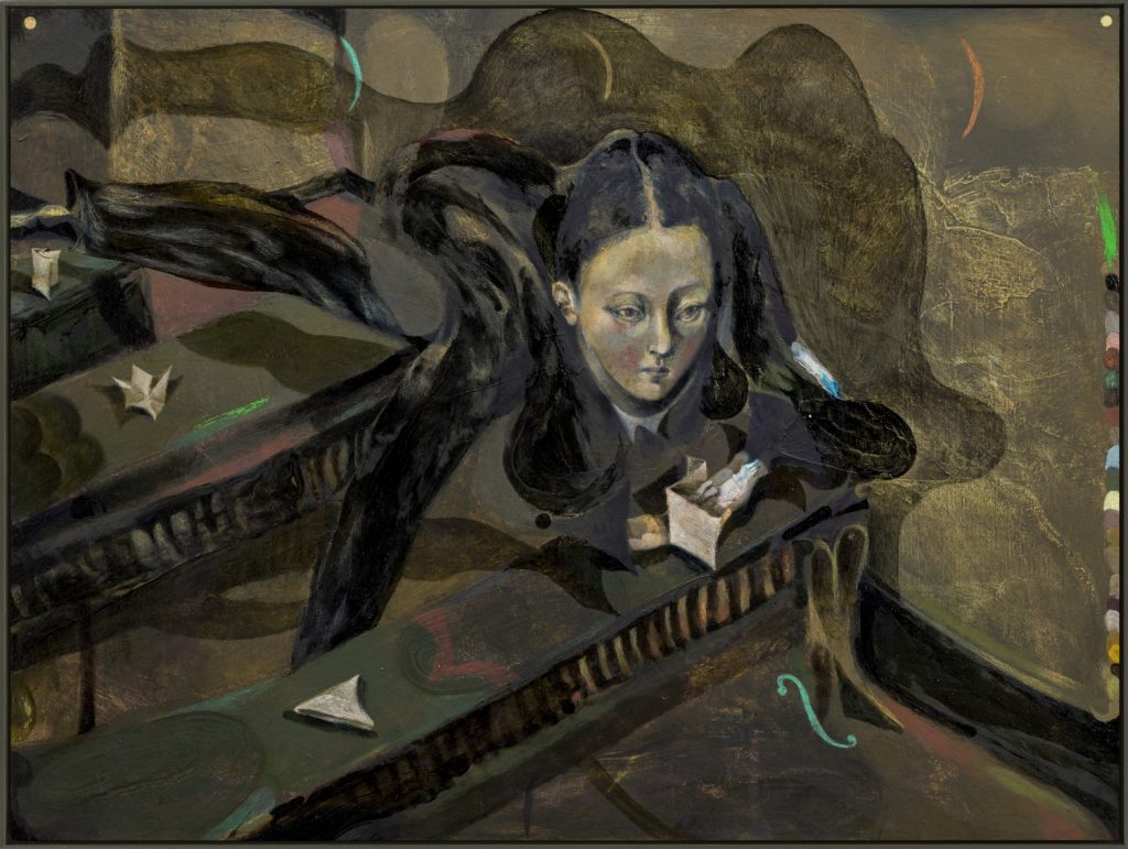 Figure sospese tra realtà e finzione, reliquie domestiche ambigue e interni percorsi da suggestioni narrative creano un impianto labile in cui profilo e paesaggio si fondono. Ciò che appare si mette in dialogo con ciò che rimane in attesa di completamento, conferendo pluridimensionalità al campo visivo. L’eco della Mitteleuropa emerge dunque come clima mentale più che come citazione iconografica: un senso di sospensione storica e psicologica che trova nella pittura la propria espressione latente.