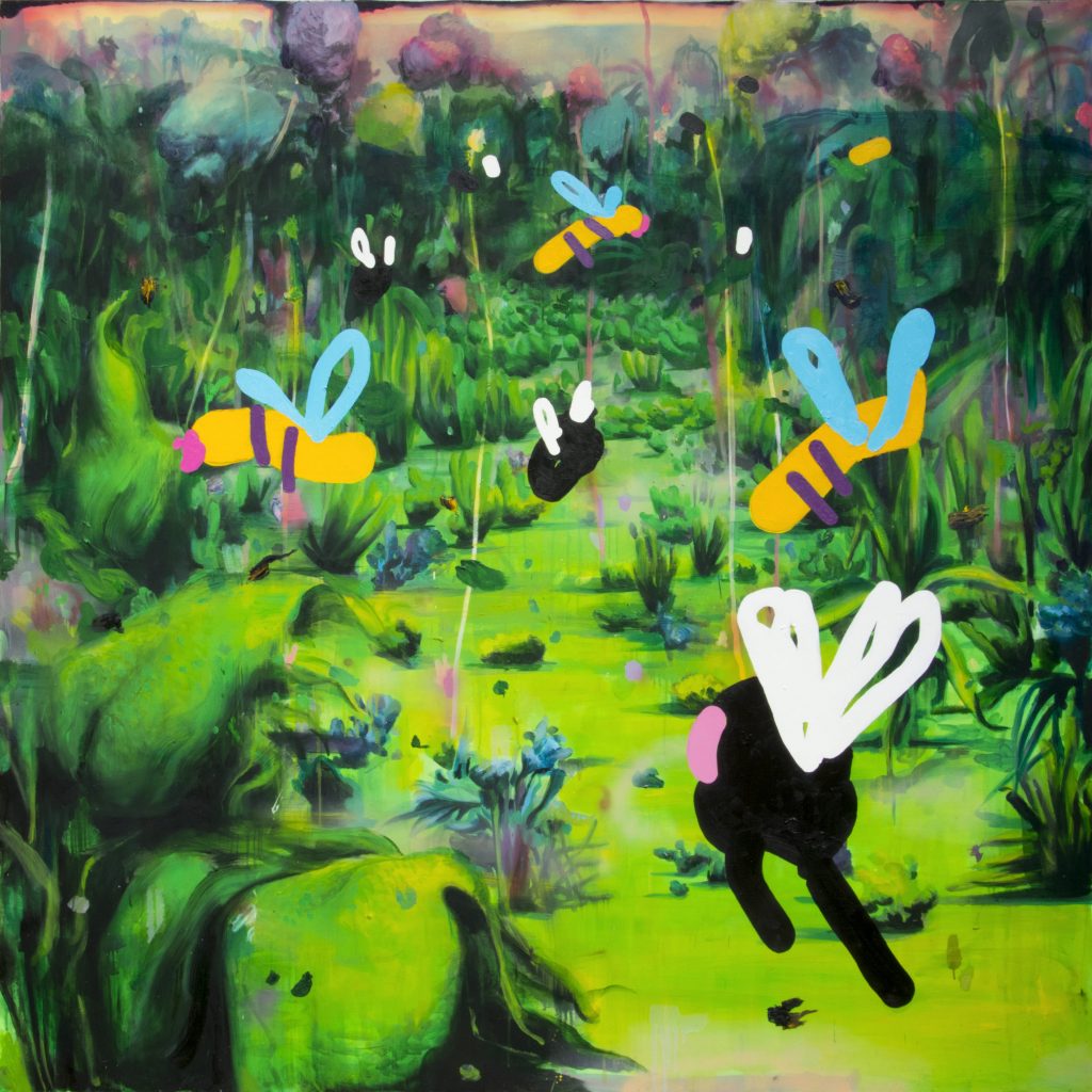 La caratteristica che accomuna il lavoro più recente di Galli è che su ogni dipinto dai colori omogenei e tonali, con pennellate larghe e pastose che definiscono gli elementi base del soggetto prescelto, egli interviene con segni pittorici colorati, dai toni vivaci e aciduli, spesso in contrasto con la base che gli accoglie; una sorta di innesto che l’artista traccia a mano libera sempre con la stessa tecnica ma che concepisce al computer con i programmi di fotoritocco digitale. Questi tratti netti e decisi, che confliggono con i contorni indefiniti e sinuosi delle forme sottostanti, sono interventi che rimandano in modo forte al mondo contemporaneo dei comics e della pittura segnica. Forzano l’omegeneità del dipinto sovvertendone le regole e, pur ponendosi come elemento di disturbo, permettono al fruitore di percepire l’opera in senso unitario.