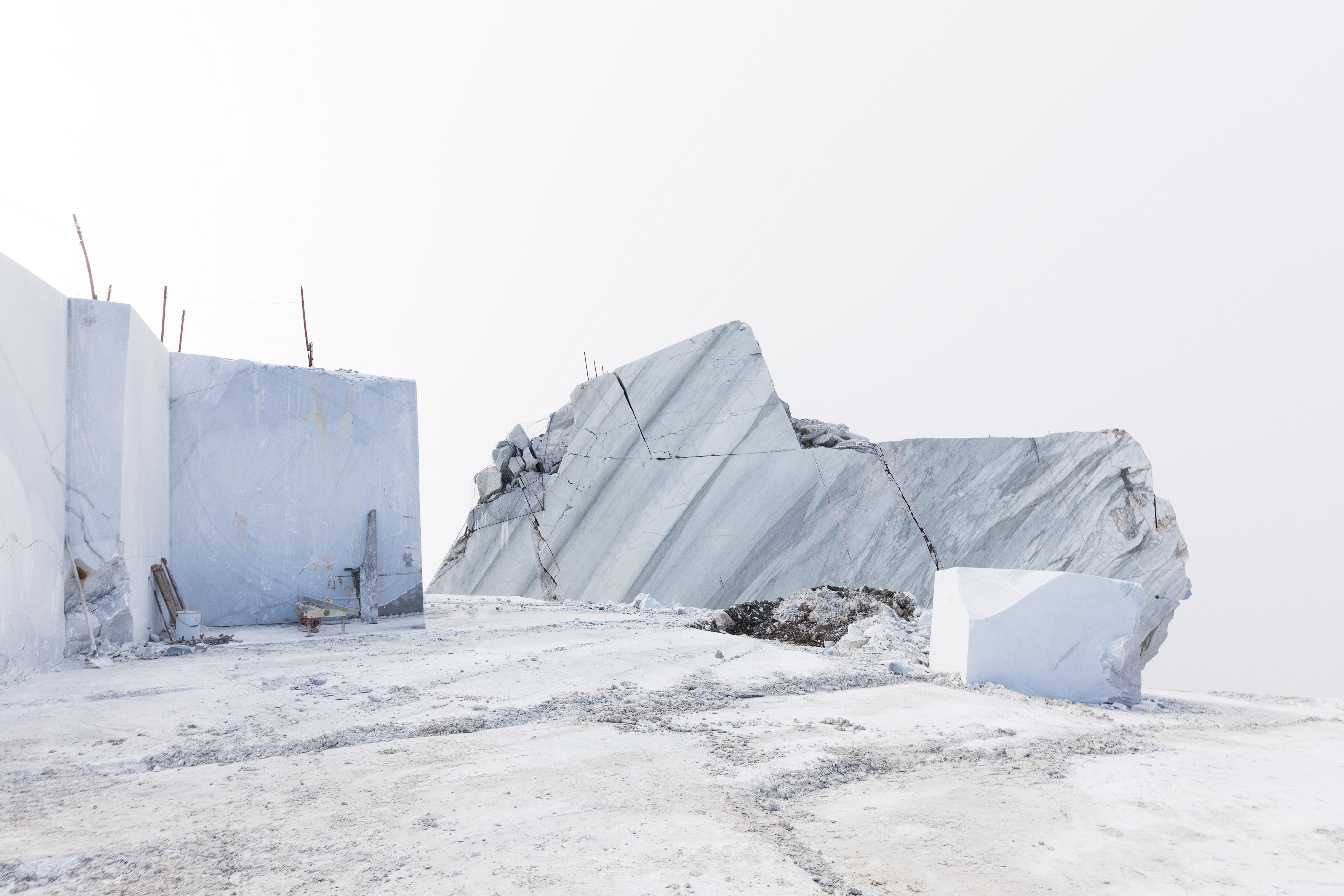 «È stato assolutamente incredibile! Visitare la cava è stato come andare sulla luna, o forse più come essere su una ziggurat bianca a testa in giù, o addirittura, mi verrebbe da dire, come finire nella prima scena di Prometheus (2012) di Ridley Scott», ha raccontato Olivia Erlanger, originaria degli Stati Uniti, classe 1990, attualmente a New York. «È stato pazzesco approfondire la conoscenza sulla regione e le sue connessioni storiche, scoprire che è stato Michelangelo (quelMichelangelo) a iniziare la cava di Querceta. E mi sento in debito con Michele, l’ingegnere con cui collaboro, per avermi insegnato così tanto sulla produzione e costruzione contemporanea del marmo».