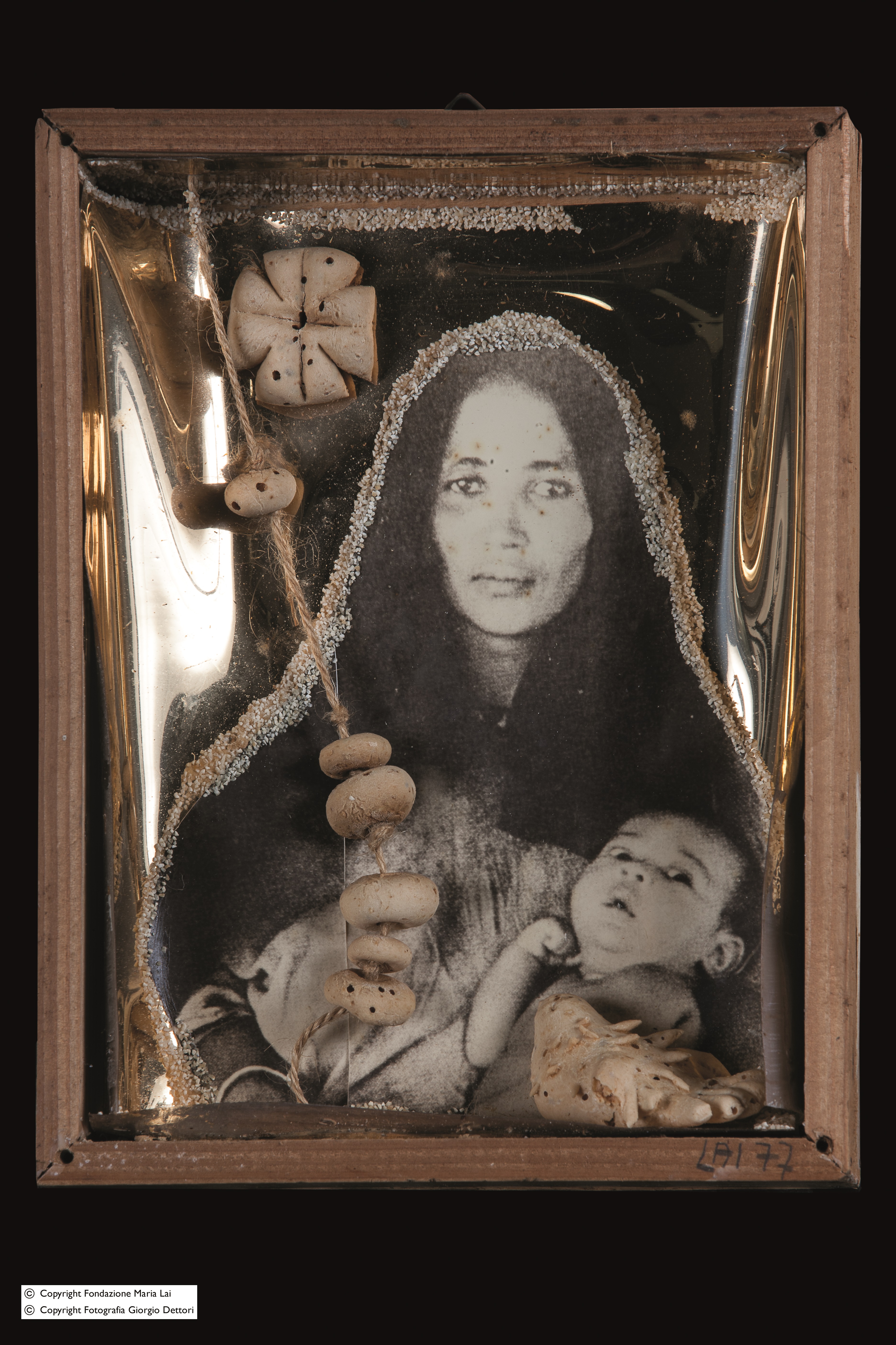 “Un filo nella notte” ha per oggetto il presepe, in accordo con questi giorni natalizi e con il famoso, napoletanissimo “Presepio Cuciniello” che, insieme ad altri meno noti, è in esposizione permanente proprio nella Certosa di San Martino. L’autrice delle opere de “Un filo nella notte” è Maria Lai (1919-2013), che credo non sia sbagliato considerare quale profonda interprete della sua terra. Maria nacque a Ulassai, un paese alle falde del massiccio del Gennargentu, nella subregione barbaricina dell’Ogliastra. Terra antica, testimoniata dai nuraghi, terra tra i monti che, da sempre, la difesero dalle invasioni di cui spesso la Sardegna è stata oggetto, iniziando dagli antichi Fenici, che non riuscirono a intaccarla. Così, nei secoli, la Barbagia è riuscita a conservare la propria identità. Ed è l’anima profonda della Sardegna che viene espressa in queste opere di Maria Lai.