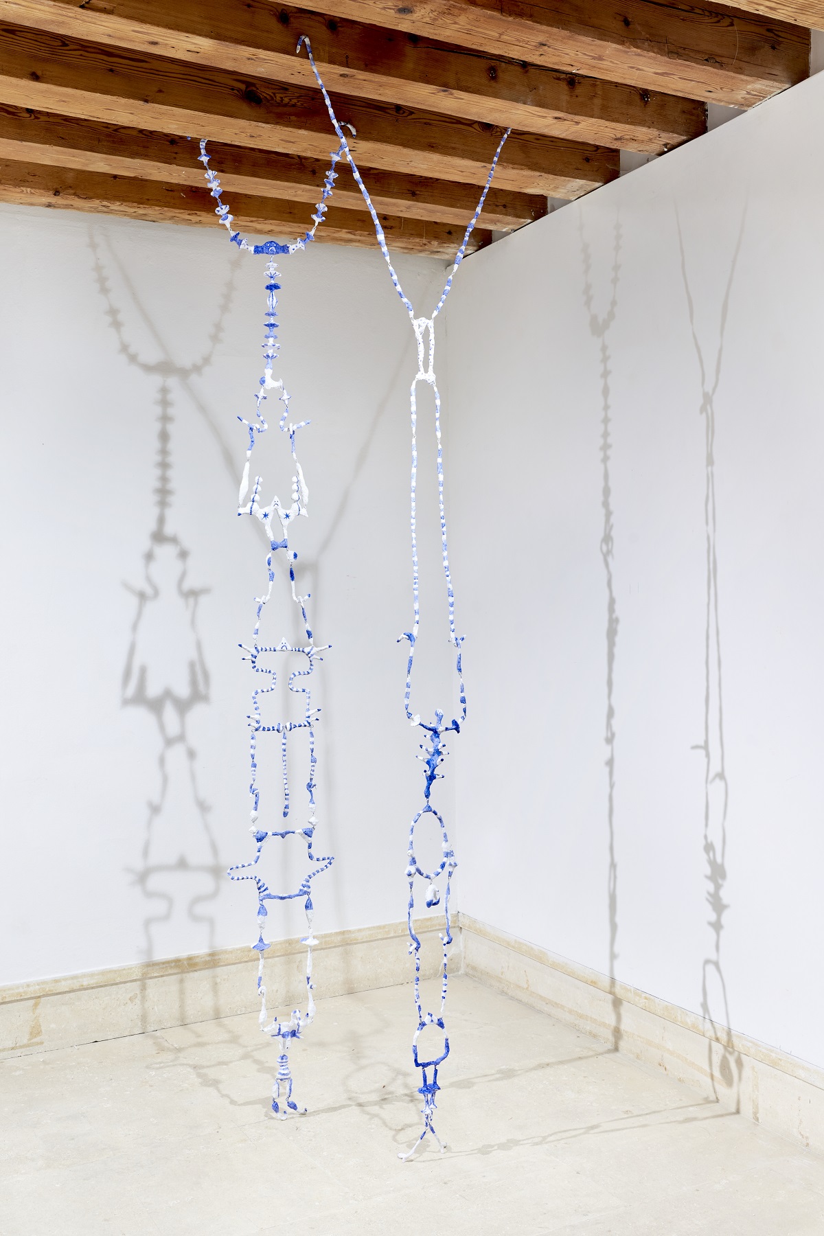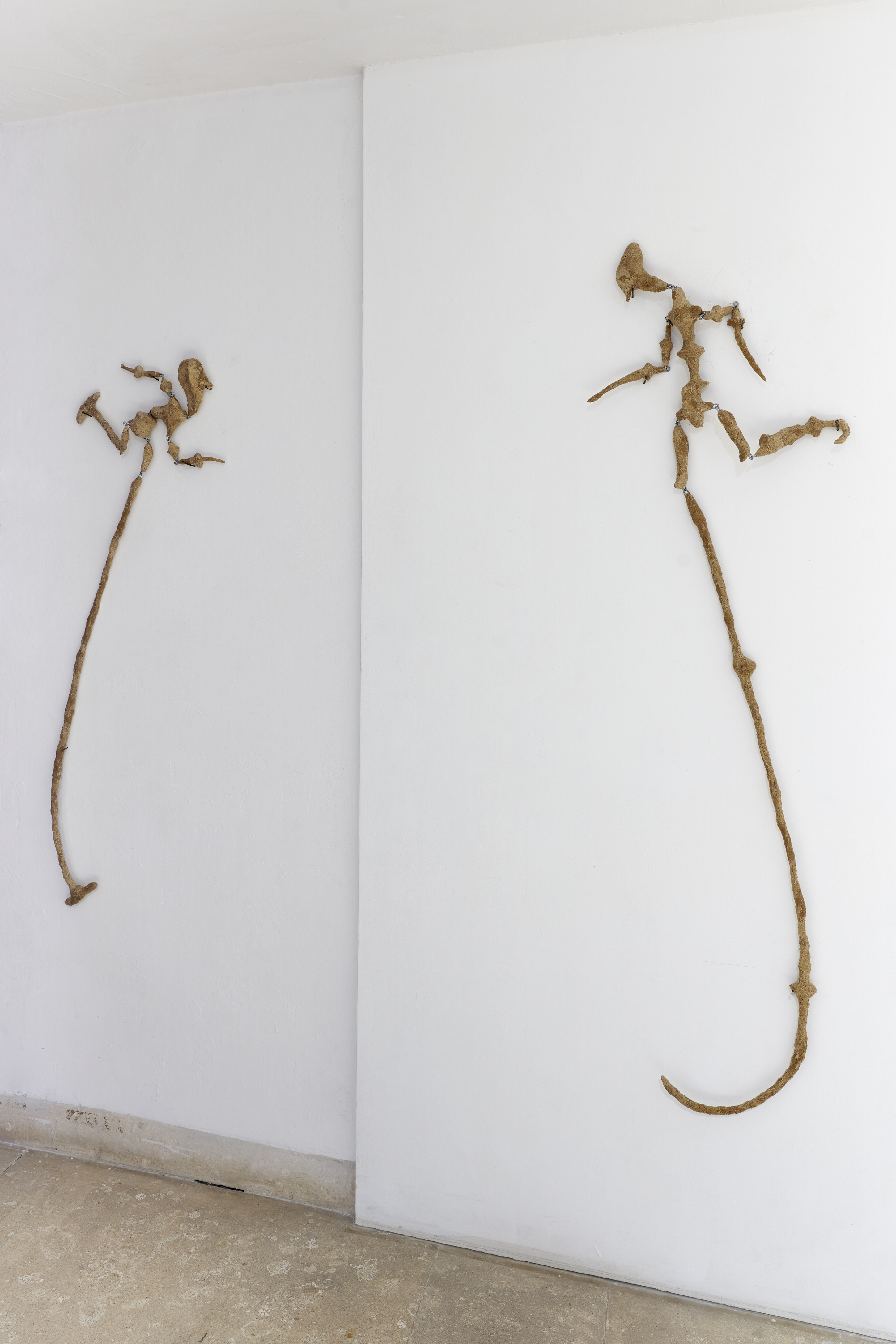 «L’infanzia è il periodo in cui ci si confronta direttamente con il mondo, senza preconcetti o pregiudizi, ma è anche il periodo in cui questi si formano. La mia pratica si nutre di sbalzi, tra ingenuità e giudizio, verso materiali, oggetti, tecniche, meccanismi, sistemi, relazioni, etc. Trovo cruciale mantenere soprattutto la sensazione dello sguardo ignorante nel momento in cui vede le cose per la prima volta e cominciano a formarsi delle spiegazioni. Credo che fosse ciò che sfruttavano anche i Muppets, che, nati negli anni ’50 per brevi pubblicità, evolsero nel Muppet Show mandato in onda in seconda serata, diventando il primo show televisivo al mondo per adulti gestito interamente dai pupazzi. I corti in cui apparivano erano molto violenti, i pupazzi si sparavano, si mutilavano, bruciavano ed esplodevano. É per questo che il lavoro Entry exam (exploded Muppets), posizionato alla fine del percorso espositivo, blocca il pubblico togliendo la possibilità di un ultimo sguardo dal balcone. Un cortocircuito o una brusca fine, in cui è lo stesso visitatore a essere assoggettato alle loro condizioni per poter entrare o meno nel club di chi ce l’ha fatta. I Muppets entravano in scena come kamikaze, autodistruggendosi, e hanno avuto moltissimo successo. Quindi, cosa si può imparare da questo? Il percorso della mostra inizia con un invito al tavolo rotondo, in partenza un tavolo da poker successivamente colonizzato dalla struttura labirintica, che non dà spazio al dialogo di chi gli sta intorno, ma consuma l’attenzione con molti trucchi teatrali, pittorici e scultorei per mantenere il gioco in mano. L’osservatore gli gira intorno e lo vede da esterno, mentre alla fine del percorso si ritrova osservato dai Muppets come se fosse all’interno del labirinto, davanti la giuria dell’ultimo esame. Alle sue spalle Off the wrong foot i due burattini che hanno iniziato col piede sbagliato, inchiodati al muro, rimangono crudi e grezzi in uno stato embrionale, pseudo astratto – prenatale – prima dell’infanzia. Sono lì, come per guardare le spalle al visitatore, ricordando anche che lo spazio metafisico in cui esso si trova è interno a un organismo architettonico da cui si potrà uscire solamente tornando indietro (non sostenendo l’esame), perché per andare avanti bisognerebbe entrare nel club esplodendo come i Muppets».