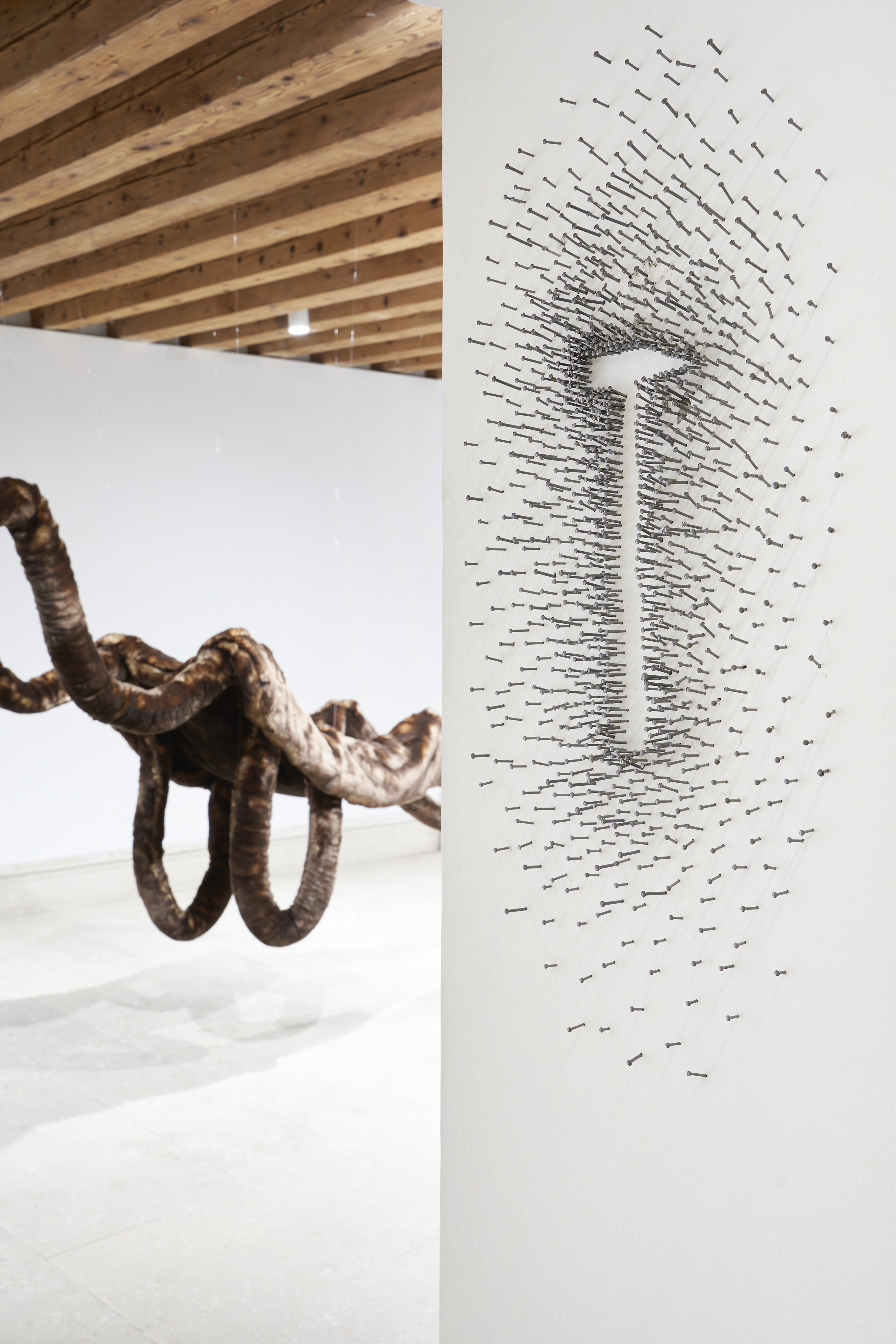 «La pittura mi ha formato: quella di Venezia, dell’Atelier F e del Workshop di Forte Marghera. Perciò, più che uno sciopero verso, direi uno sciopero per: un omaggio alla serietà della pittura che, in questa città – luogo così caro a tanti artisti formati come me all’Accademia di Venezia – viene spesso intesa come una forza vitale ancorata nel profondo dell’esistenzialismo personale di chi la pratica. Fino a quando la nostra percezione di arti visive avverrà prevalentemente attraverso gli occhi, ci sarà un elemento pittorico in ogni medium. I chiodi che solitamente supportano i quadri (assenti in questa occasione), disegnano il ritratto del loro esecutore: il martello usato per inchiodare. Scioperano contro il male causatogli dal martello, mostrando ai passanti la sua forma: tuttavia, alla fine del conflitto, chi soffre di più è il muro. Faccio riferimento anche ai numerosi scioperi degli ultimi anni (soprattutto in Slovenia) e all’inevitabilità dei sacrifici che implica una protesta. Strike è anche un piccolo sciopero contro le istituzioni, il sistema in generale e il mercato dell’arte, che sfruttano la disperazione economica degli artisti, per i quali la pittura spesso diventa un appiglio in termini di mercato piuttosto che di libertà artistica. I chiodi sono uno degli elementi primari e quasi dati per scontati ma tra i primi che hanno permesso di esporre i quadri a parete. Il loro sciopero è anche un raduno per preparare un nuovo terreno e ce ne vorrà di pittura per coprirne le conseguenze».