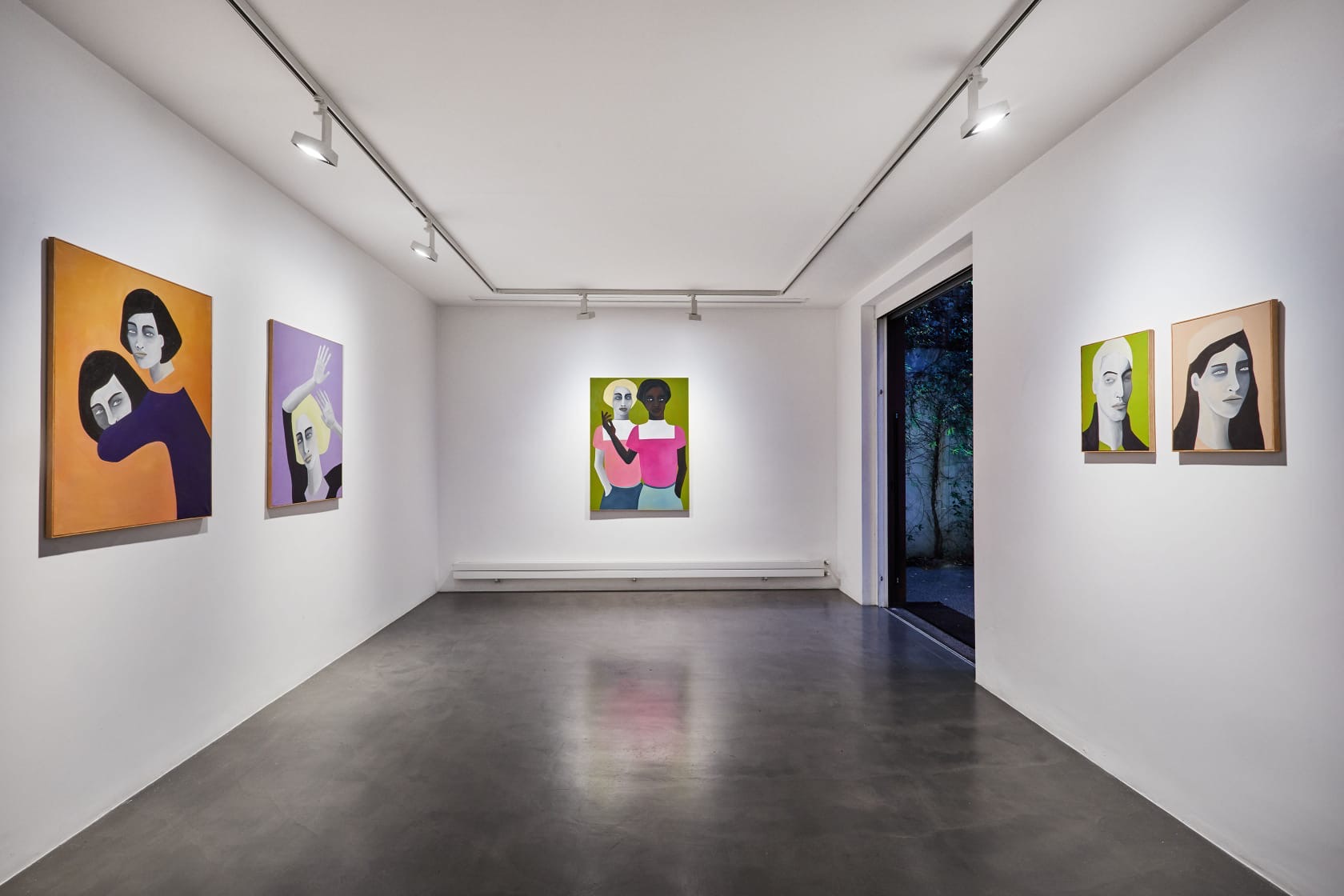 «Gli equilibristi e i danzatori che abitano il mondo astratto delle dodici tele a olio in esposizione, appaiono sospesi in un equilibrio instabile e perpetuo», osserva la curatrice. I ritratti di Rebecca Brodskis, slegati dall’idea classica di rappresentazione, assumono una bidimensionalità tipica bizantina, perdendo ogni riferimento spazio-temporale, il cui dinamismo li sottrae a qualsiasi sovrastruttura sociale o appartenenza di genere. I personaggi, rappresentati singoli o in coppia, si intrecciano senza toccarsi; la rigida espressività è affidata al volto, soprattutto se in primo piano, e alle mani, che l’artista afferma, in un nostro colloquio, essere l’unica parte del corpo ritratta dal vero.