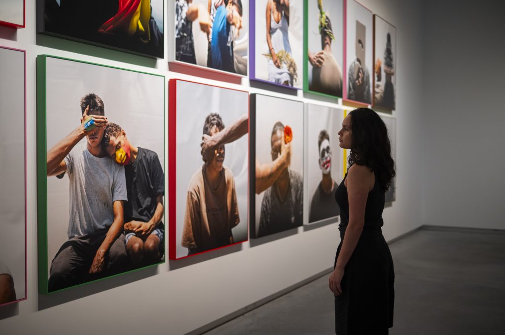 Una tensione analoga attraversa anche il Campbelltown Arts Centre, dove tuttavia la riflessione si amplia fino a comprendere le dinamiche collettive che plasmano le comunità contemporanee. Qui i temi della migrazione, dell’identità e della costruzione di spazi condivisi si intrecciano con una riflessione più cupa e stratificata sull’incarcerazione, intesa non solo come condizione architettonica ma anche come dispositivo sociale e psicologico. In questo contesto, l’installazione video immersiva a quattro canali Code Black/Riot di Hoda Afshar, Behrouz Boochani e Vernon Ah Kee si impone come fulcro dell’intero percorso: attraverso il racconto della detenzione giovanile e indigena, l’opera restituisce con forza gli effetti della ghettizzazione e della segregazione sistemica, rendendo tangibile la continuità tra passato coloniale e presente istituzionale.