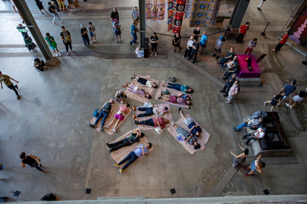 Il capitolo ospitato dalla Art Gallery of New South Wales si scinde in due e per la prima volta occupa non solo l’ala antica Naala Nura ma anche la più recente addizione Naala Badu. Le due sedi ospitano una riflessione dedicata alle modalità in cui le comunità abitano e danno forma ai luoghi, alle connessioni tra individui e alle comunità, soprattutto nel più ampio contesto della migrazione. Notevoli sono l’intervento No Condition is Permanent di Taysir Batniji, l’installazione dalla serie Flowers for Africa di Kapwani Kiwanga ma anche il mediometraggio Field Report di Kuba Dorabialski. Cuore pulsante della mostra è l’installazione monumentale Ngurrara Canvas I, realizzata dal collettivo aborigeno Ngurrara Artists: un racconto familiare condiviso, una mappa “vivente” del Great Sandy Desert, dove a ciascuna posizione corrisponde una storia familiare, una relazione personale e dunque un radicamento emotivo delle comunità Walmajarri, Mangala, Juwaliny, Wangkajunga e Manjilarra, storicamente costrette alla rilocazione a seguito dell’esproprio dalle proprie terre natie.