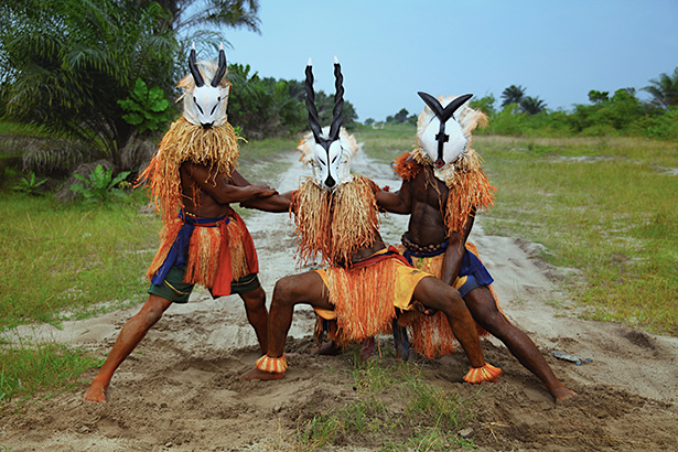 L’identità negata è al centro della ricerca del sud-africano Buhlebezwe Siwani che racconta, con la sua video installazione AmaHubo, come l’espropriazione della terra vada a pari passo con la soppressione delle pratiche spirituali a cui sono state sottoposte le comunità di antenati, aprendo un occhio sul senso profondo della ritualità e delle tradizioni. Analogamente, la filmmaker Zina Saro-Wiwa utilizza video-istallazioni, fotografie e opere di sound art prodotte nello Stato del Delta, a sud-est della Nigeria, per raccontare il folklore, le maschere tradizionali, le pratiche religiose e l’estetica delle popolazioni locali e testimoniare, attraverso il suo ricercato linguaggio ricco di simboli e metafore, la lotta per la sopravvivenza degli indigeni, in una terra oggetto di sfruttamento da parte delle multinazionali dell’estrazione petrolifera. Non è un caso che l’artista prenda il suo nome d’arte da Ken Saro-Wiwa, intellettuale e portavoce delle rivendicazioni dell’etnia Ogoni a cui apparteneva, assassinato con la complicità del governo proprio per il suo attivismo contro le devastazioni della Shell nella sua terra, il Delta del Niger.