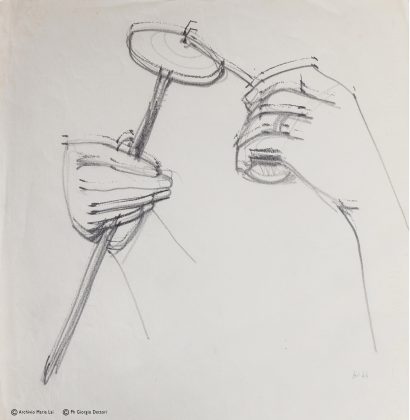 Il tema del Sacro ricorre spesso nell’opera di Maria Lai, non perché lei fosse praticante, ma perché attraverso la rivisitazione delle tradizioni – che in Sardegna sono pervase di religiosità – fosse possibile reinterpretare il mondo, rendendo l’arte contemporanea accessibile a tutti, anche attraverso i legami con i riti della fede cristiana.