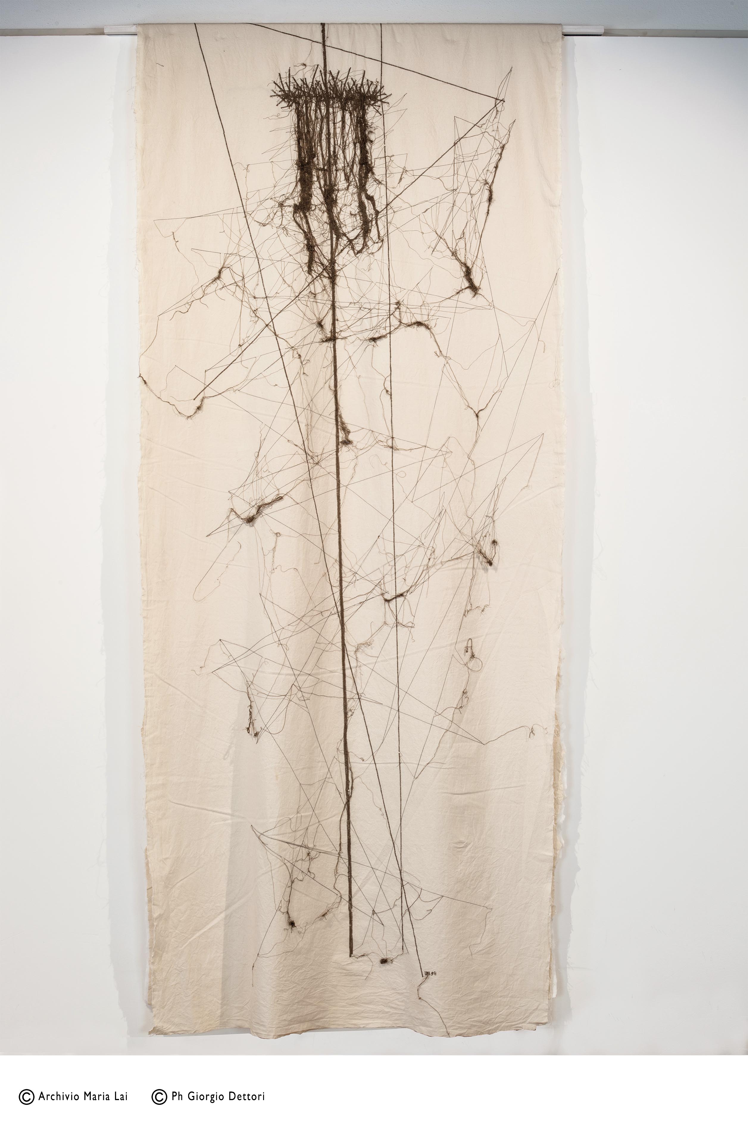 Dai bozzetti per la Via Crucis che Lai dona alla chiesa di Ulassai nel 1981, all’imponente Sindone, il tema della morte del Cristo, viene sviscerato in ogni sua forma attraverso le opere; ed è intuitivo ritornare con la mente ad una frase che l’artista scrive nel 2004: “Ciò che resta di Cristo nel Vangelo non è la sua presenza umana, è il suo morire e la sua resurrezione”.