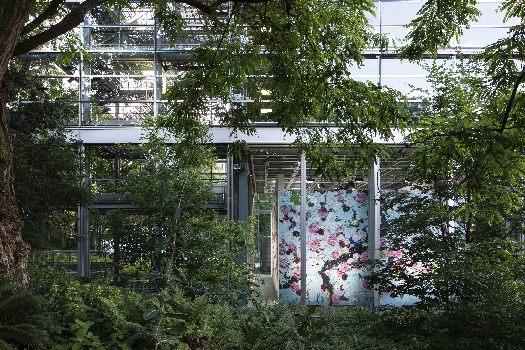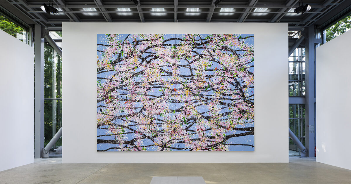 Paradigmatica si manifesta la stupefacente esposizione di Damien Hirst dal titolo “Cherry Blossoms” alla Fondation Cartier pour l’art contemporain. L’intero spazio espositivo è rivestito da una trentina di grandi tele dipinte – pannelli unici, dittici e trittici imponenti – scelte dalle serie di 103 ultimate nel 2020. “I Cherry Blossoms parlano di bellezza, vita e morte. Sono estremi – c’è qualcosa di quasi pacchiano in loro. (…) Sono decorativi ma presi dalla natura. (…) Sono sgargianti, disordinati e fragili e parlano di me che mi allontano dal Minimalismo e dall’idea di un immaginario pittore meccanico e questo è così eccitante per me.” che questa dichiarazione provenga da Damien Hirst è sorprendente come la tecnica e il risultato.