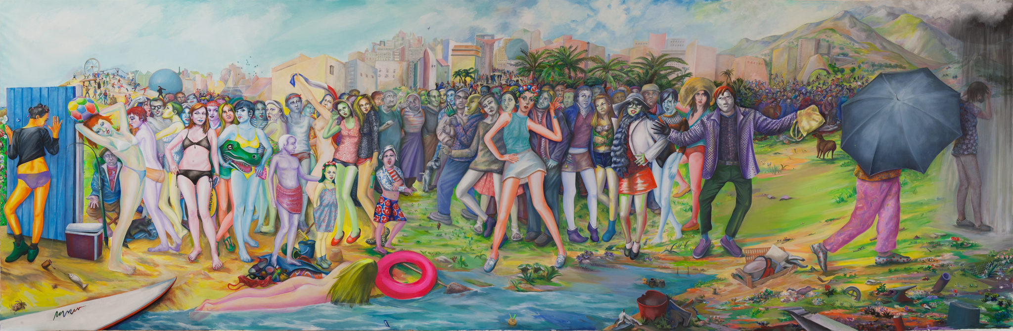 Se la monografica monotematica alla Fondation Cartier dovesse apparire come l’episodica epifania di un ripensamento autocritico, la scelta per l’inaugurazione della Bourse de commerce tra le opere dell’inesauribile Collection Pinault si presenta come una precisa volontà di rappresentare nella complessità espressiva dei linguaggi delle opere delle diverse provenienze geografiche, la forza delle forme tradizionali di espressione artistica, dipinti, fotografia, scultura. Non può considerarsi casuale che la prima opera che il visitatore incontra è una grande tela di Martial Raysse, Ici Plage, comme ici-bas del 2012 una scena grottesca gremita di bagnanti e figuranti come una parodia ed estremizzazione delle grandi foto di spiagge di Massimo Vitali.