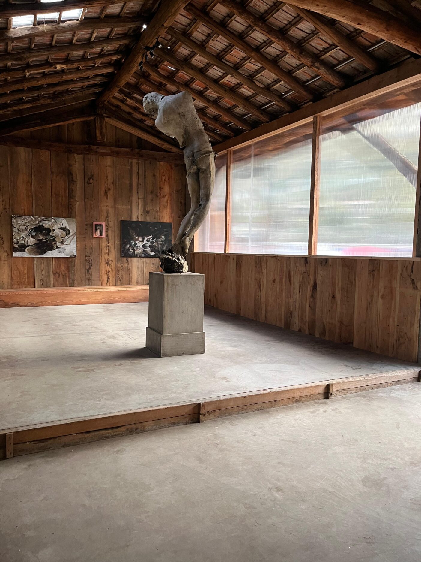 Lo spazio che Rumi ha creato gli somiglia. I casolari da lui restaurati sono fitti di sportelli di legno nascosti, che celano piccole sorprese. Dalle teste in grès porcellanato di Nicola Samorì (Forlì, 1977) raccolte alla mostra Black Square (Made in Cloister, Napoli, 2020) a una minuscola scultura di Aron Demetz (Vipiteno, 1972), fino ai più strani minerali trovati sulle montagne circostanti.