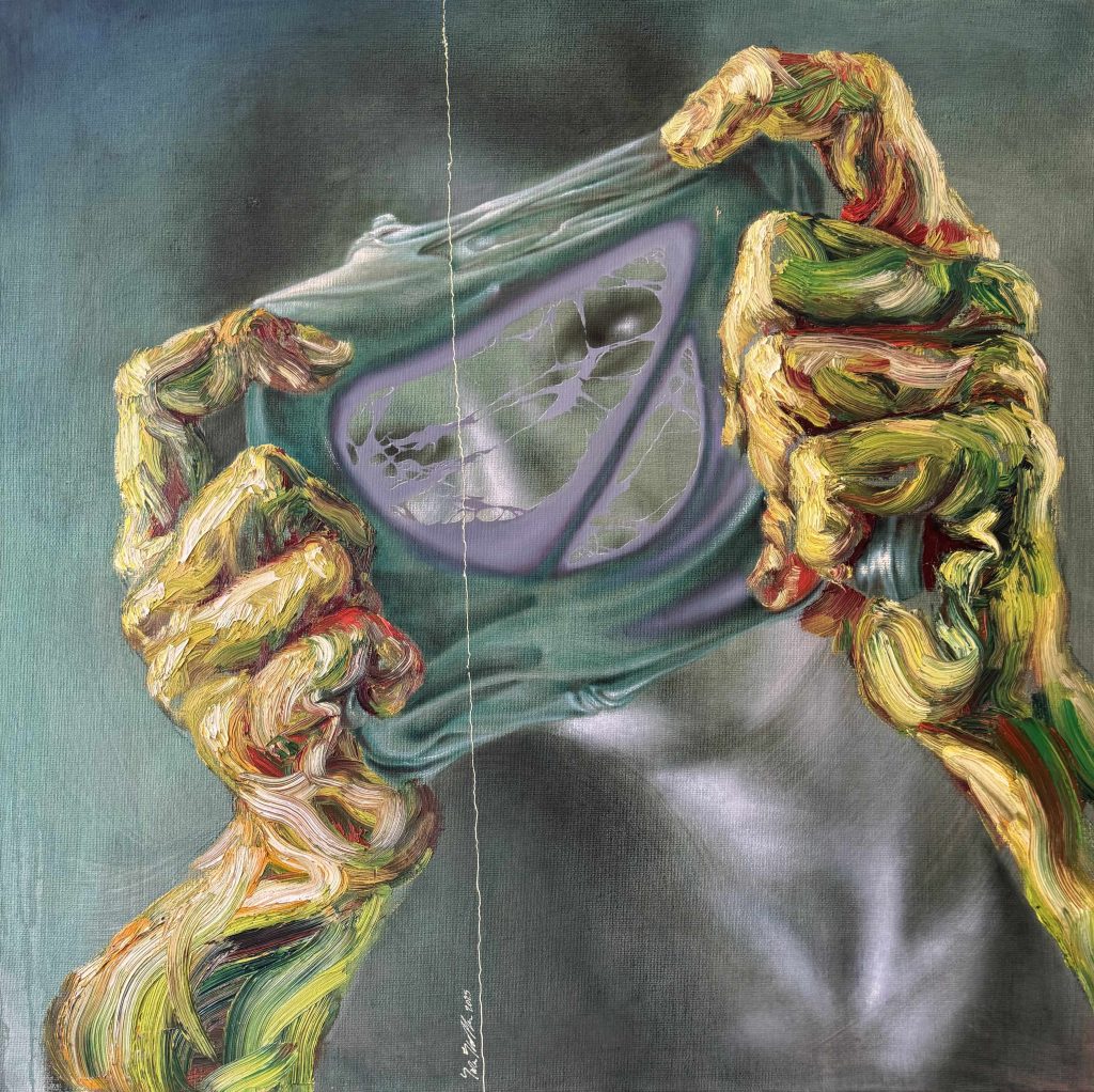 Sara Shamma, nata a Damasco nel 1975, è tra le voci più importanti dell’arte contemporanea siriana. La sua pittura figurativa racconta di persone segnate dal conflitto e dai traumi della vita quotidiana, con ritratti che trasmettono dolore, forza, resilienza, memoria e la complessità delle esperienze individuali.