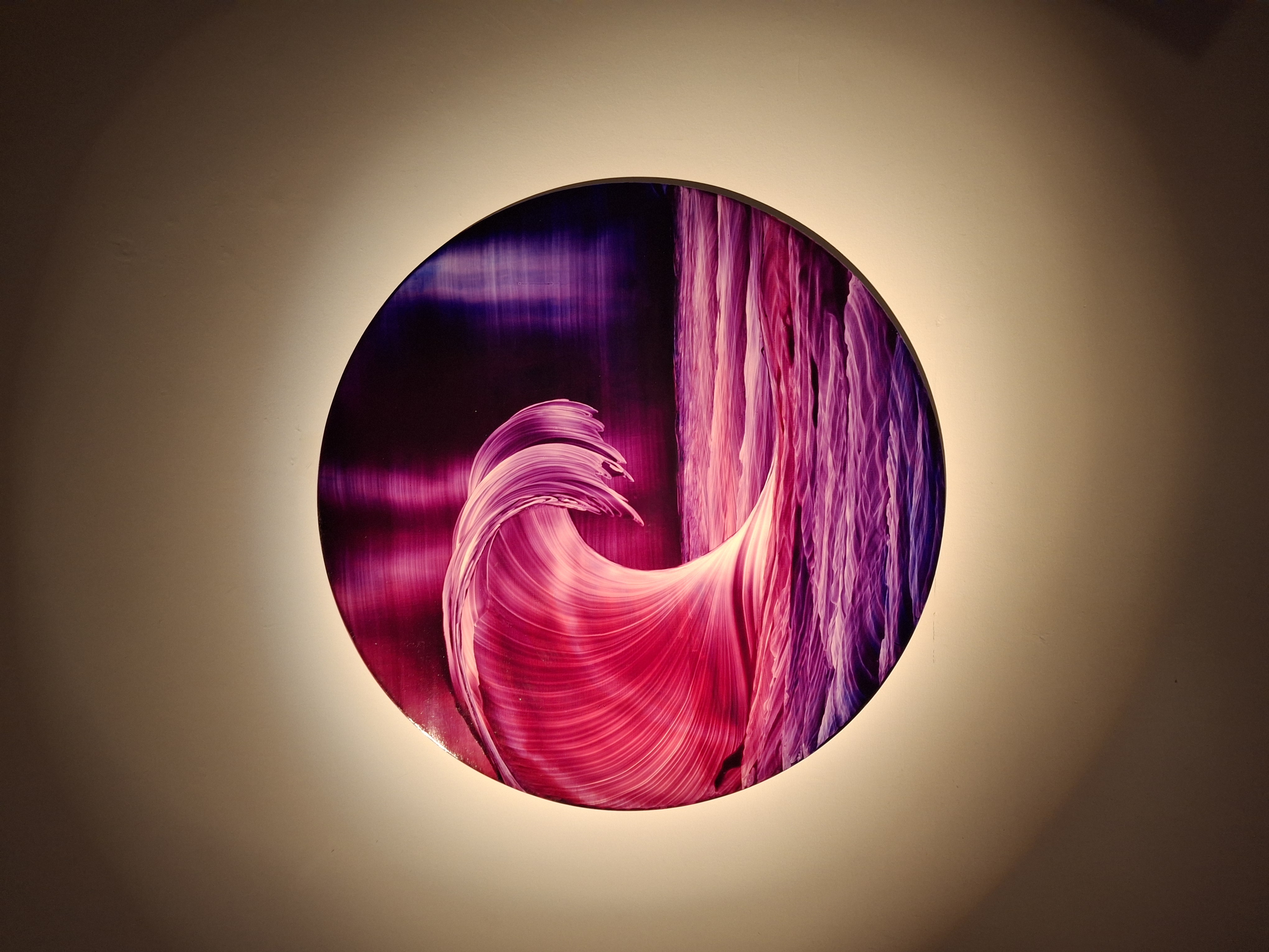 Nel teatro della galleria, una grande onda sembra animarsi sotto gli occhi degli spettatori, resa ancor più viva dal rumore della risacca. La pittura iridescente di Nalli conferisce alle tele una loro peculiare tridimensionalità. Rosa, rossi, blu, viola e verdi si avvicendano in graduali passaggi tonali, dando luogo a paesaggi mentali, immagini siderali o magmatiche, a seconda della nota dominante. Non rappresentazioni ma visioni in cui labile, finanche indecifrabile, si fa il confine tra l’intenzionalità dell’autore e le possibilità costruttive delle pennellate. Un’indagine che dalla superficie si spinge oltre, dentro la pittura, per ingarne in profondità gli esiti materici e le potenzialità formali, con effetti nuovi, talvolta sorprendenti.