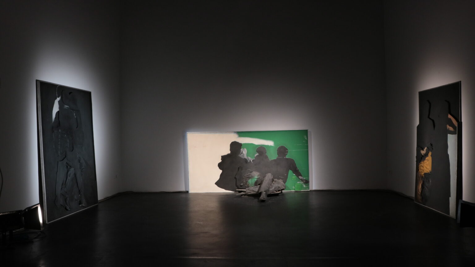 Dell’evento il pittore vuole anche la materialità. Ed ecco che le figure tra il 1967 e il 1968 si fanno tridimensionali, emergendo dal fondo fino a conquistare lo spazio antistante. Mani, gambe, pieghe di camice e pantaloni, superano la tela andando incontro al pubblico. Complice la grandezza naturale dei soggetti ritratti, tutti senza volto ad indicare una condizione esistenziale generalizzata, le opere abitano lo spazio fingendosi figure tra figure.