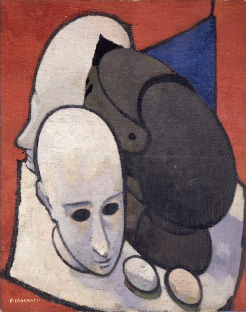 Casorati, che tante volte ricorse all’uovo, non fu certo il solo. Oltre a Paul Cezanne e Giorgio De Chirico, per esempio, Costantin Brâncusi per esempio, rispettivamente nel 1915 e nel 1916, diede forma a Beginning of the world e Neonato richiamando le linee pure ed essenziali dell’uovo; René Magritte invece, nel 1933, realizzò Affinità elettive raffigurando una gabbia di uccelli appoggiata su un davanzale con all’interno un uovo, e non un uccello. Fu Magritte stesso a condividere l’aneddoto della genesi dell’opera, che ricorda Marcel Paquet: una notte svegliandosi, ebbe la singolare allucinazione di vedere trasformarsi l’uccellino in uovo. Qualche anno più tardi, nel 1936, anche in Chiaroveggenza, l’artista dipinge un uovo sulla tela. Restando nell’affascinante mondo surrealista, fu Salvador Dalì a utilizzare spesso l’immagine dell’uovo nelle sue opere – e non solo, perché di uova adornò i tetti del suo studio a Port LLigat, in Spagna – caricandolo di significati legati alla vita intrauterina, alla fragilità, all’amore e alla speranza. Dopo la Metamorfosi di Narciso e prima della Venus Spatiale, nel 1943, durante un soggiorno negli Stati Uniti, dipinse Bambino geopolitico osservante la nascita dell’uomo nuovo – successivamente utilizzato come copertina dell’album musicale Newborn (1975) di James Gang – opera oggi conservata al Museo Salvador Dalì, in Florida, in cui l’uovo, rappresentativo del nuovo mondo globale, si apre per far spazio a una nuova umanità.