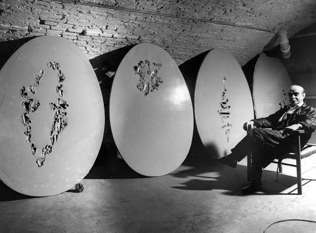 «La più bella scultura astratta», così Fausto Melotti appellò l’uovo, che agli albori della storia dell’arte era utilizzato come materia prima da chi lo mischiava con la tempera per creare pigmenti assai resistenti, come Botticelli, per citarne uno. L’aforisma di Melotti – «La gallina si rigira, e grida la sua gioia d’aver creato la più bella scultura astratta» – ci suggerisce però di guardare alla forma dell’uovo, più che alla sostanza: è infatti da un punto di vista formale e figurativo (come nel caso del Vaso del 1950 dello stesso Melotti) che l’oggetto si è esteso, attraverso epoche e culture, in grandi capolavori.