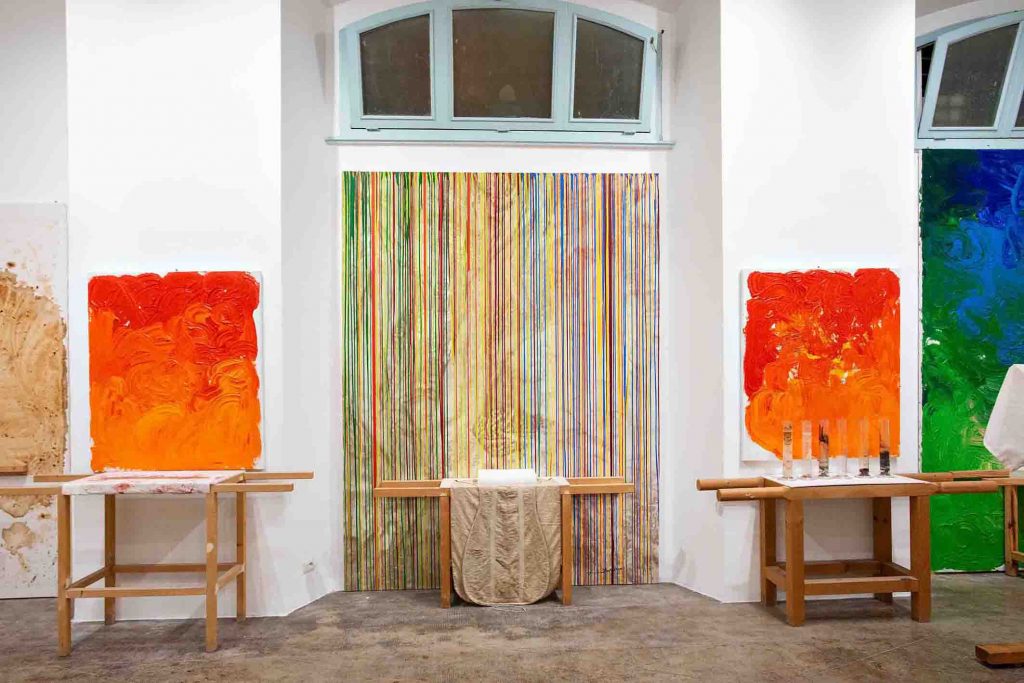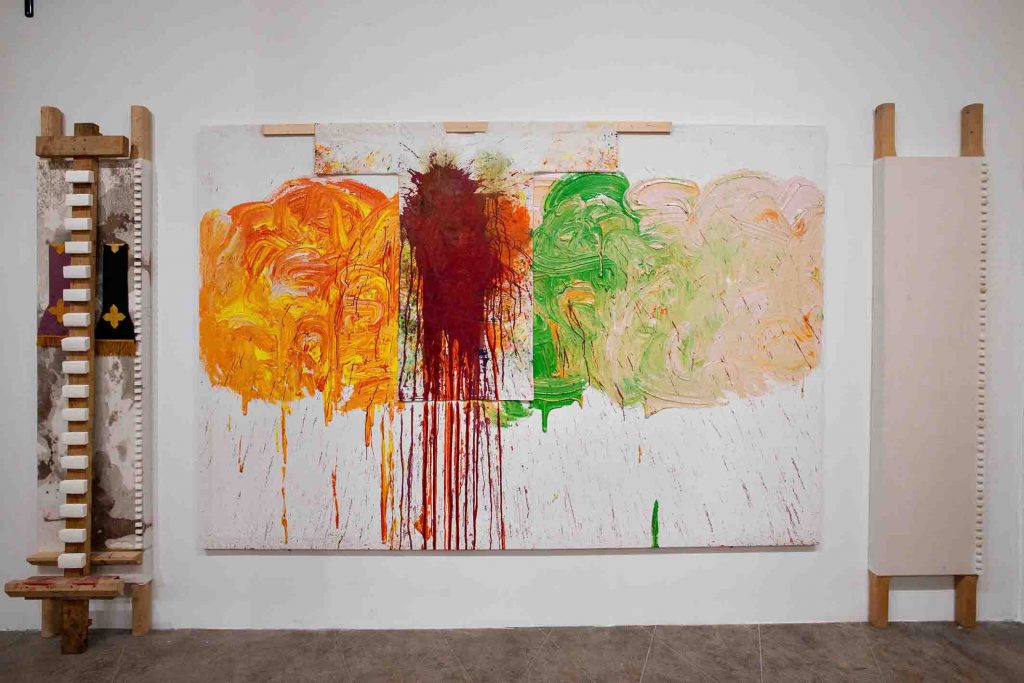 E così, in occasione di Sinfonia Napoli 2020, il Museo Nitsch esporrà, per i prossimi due anni, un nuovo corpus di opere ricavato dai Relitti d’azione – la 158.aktion è recentemente andata in scena negli spazi del Museo – e un’inedita collezione di pitture e disegni realizzati per l’occasione. «Una costellazione di “sismografie vitali” che rappresenta esemplarmente il lavoro di Nitsch come uno sforzo ostinato verso la liberazione della sensibilità dalla disciplina di una civiltà anestetizzante, una pratica di affermazione della vita attraverso il continuo rimando di corrispondenze olfattive, tattili e visive del colore. Dai relitti che, a dispetto del loro nome, testimoniano una promessa di ritorno, una resurrezione dalla dissoluzione, sino alla pittura e al disegno che celebrano, per Nitsch, la luce come condizione di esperibilità del mondo», spiegano dal museo.