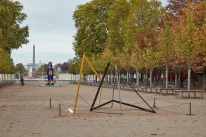 Venti artisti, fra i quali dieci donne, provenienti da tre continenti (Africa, Sud e Nord America, Europa) sono stati invitati nel Giardino delle Tuileries, uno spazio naturale, storico e pubblico nel pieno centro cittadino, a un passo da Museo del Louvre. L’intitolato «La suite de l’histoire», l’intervento esprime l’invito di Annabelle Ténèze, Direttrice degli Abattoirs di Tolosa, nota come paleografa, archivista e femminista, a riflettere su temi attuali, fra i quali il rapporto che l’arte intrattiene con lo spazio pubblico e che la curatrice suggerisce di chiamare più appropriatamente «spazio comune». Il titolo, tradotto, significa «la storia continua», ed esprime chiaramente l’idea della Storia come prospettiva, in contrasto con un concetto in voga negli anni Novanta, «la fine della Storia». Idea, per mia parte, già allora discutibile, tanto più attualmente.