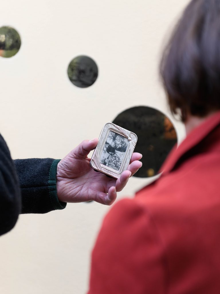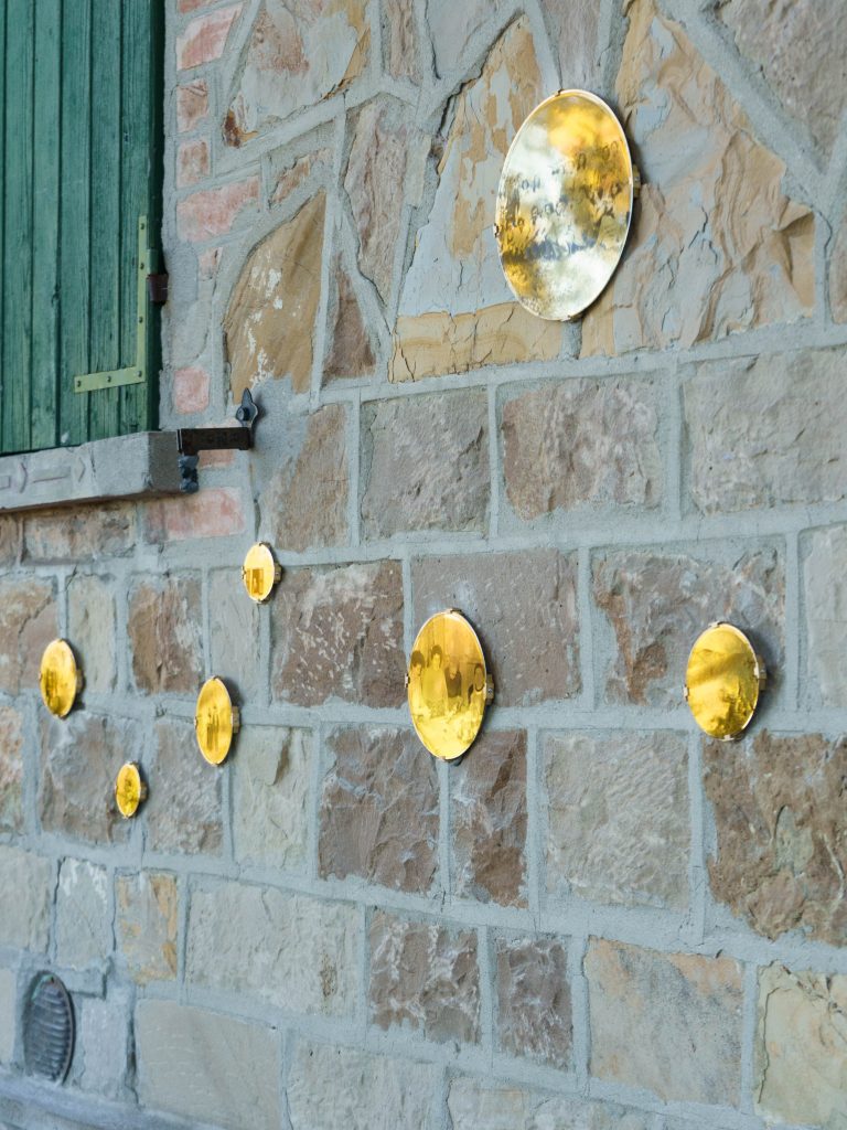 Da questo gioco sono nate le immagini comunitarie destinate a essere incise su dischi di ottone, il materiale specchiante genera un effetto cangiante che muta in base all’ora del giorno e alla posizione del pubblico, invitando a una fruizione lenta e mobile, in dialogo con il paesaggio e la natura circostante. Le tre installazioni si presentano come opere sorelle, vivono in luoghi diversi ma saranno per sempre interconnesse, formando una costellazione diffusa nelle Terre Matildiche, area storico-culturale dell’Appennino reggiano legata alla figura di Matilde di Canossa. Accanto alle installazioni, il progetto lascia una serie di grandi album fotografici, contenenti 350 immagini selezionate e annotazioni scritte dai cittadini durante il percorso, veri e propri “album di famiglia” delle comunità coinvolte. Come sottolinea Ilaria Turba: «il progetto nasce senza una forma prestabilita, ma prende corpo lentamente dall’incontro con le persone e i luoghi», diventando così un insieme di elementi singoli che trovano senso nel loro essere collegati, un segno di orientamento capace di ricongiungersi all’origine.